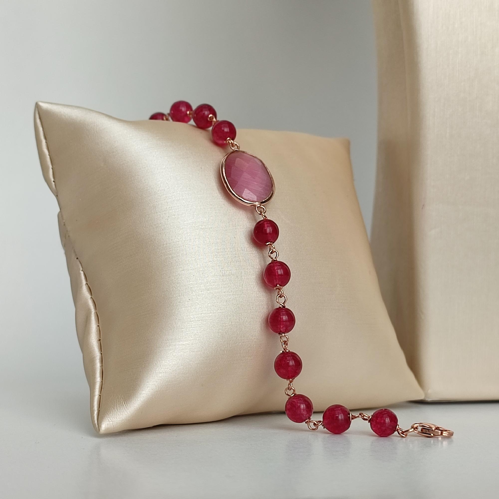 Brățară Aurora din jad roz, cu sfere de 6 mm.