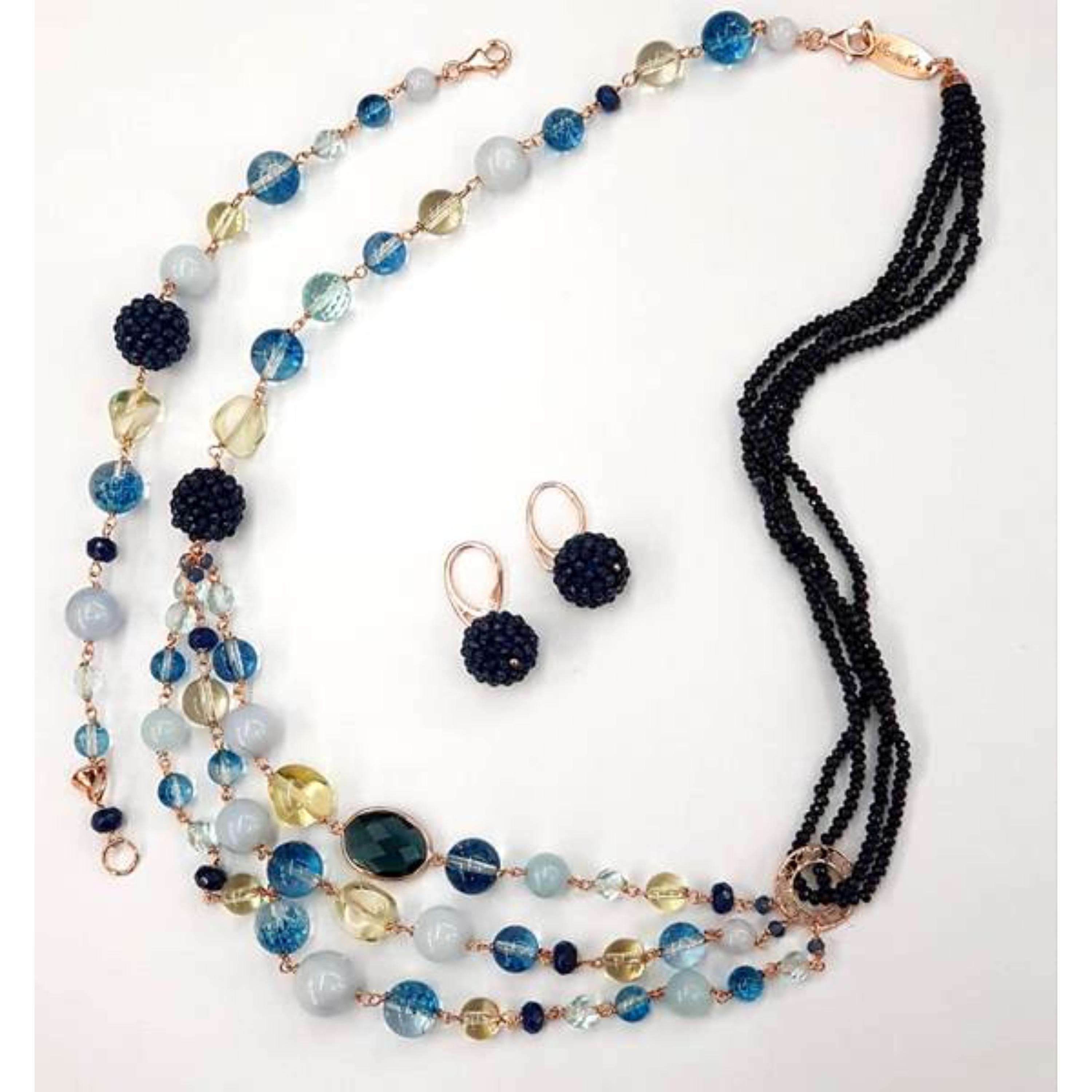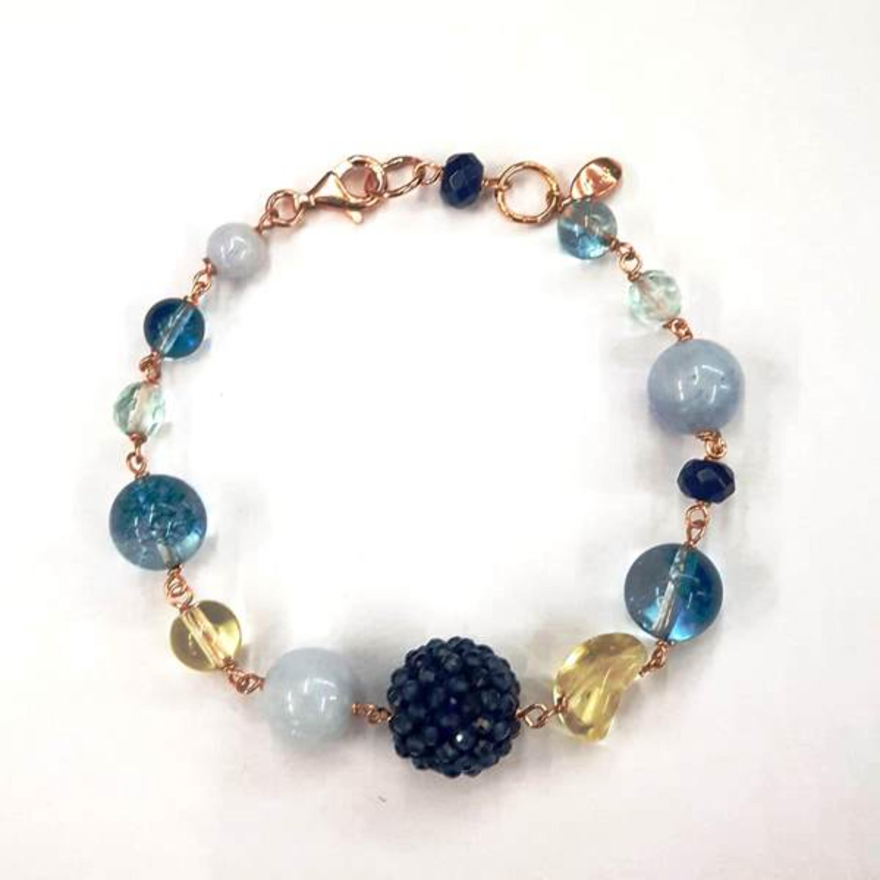 Brățară din acvamarin, cuarț albastru, agat albastru safir și citrin.