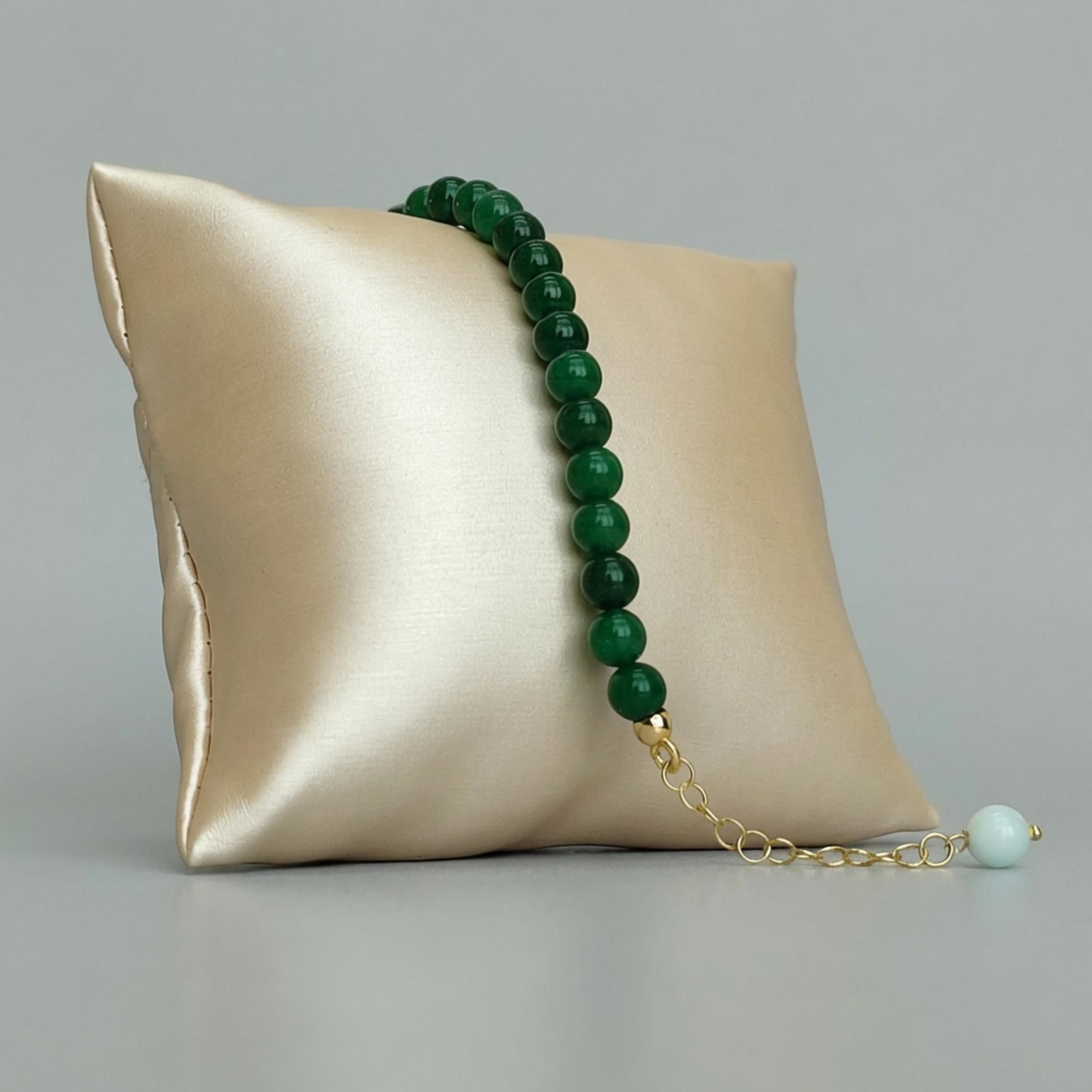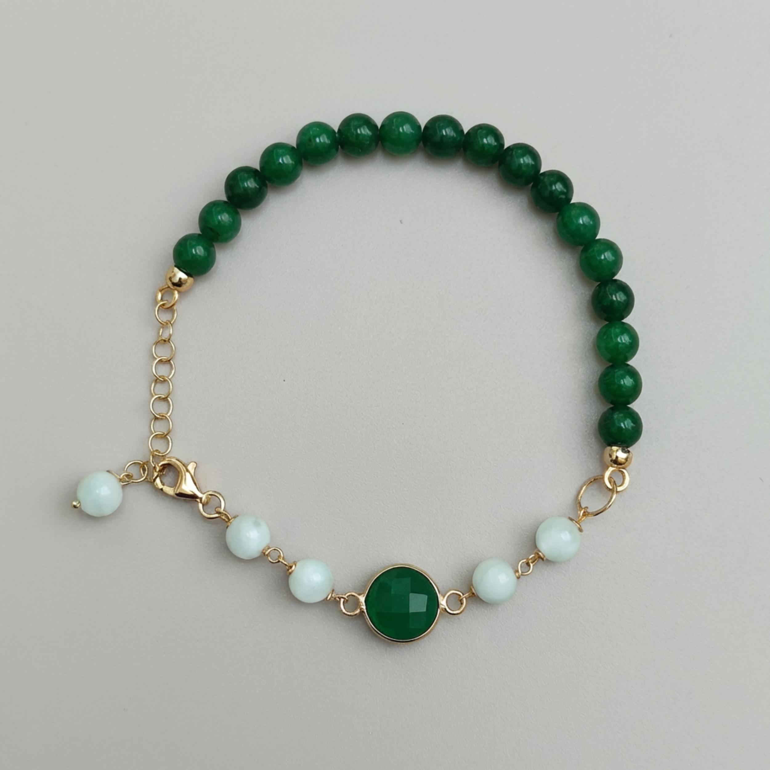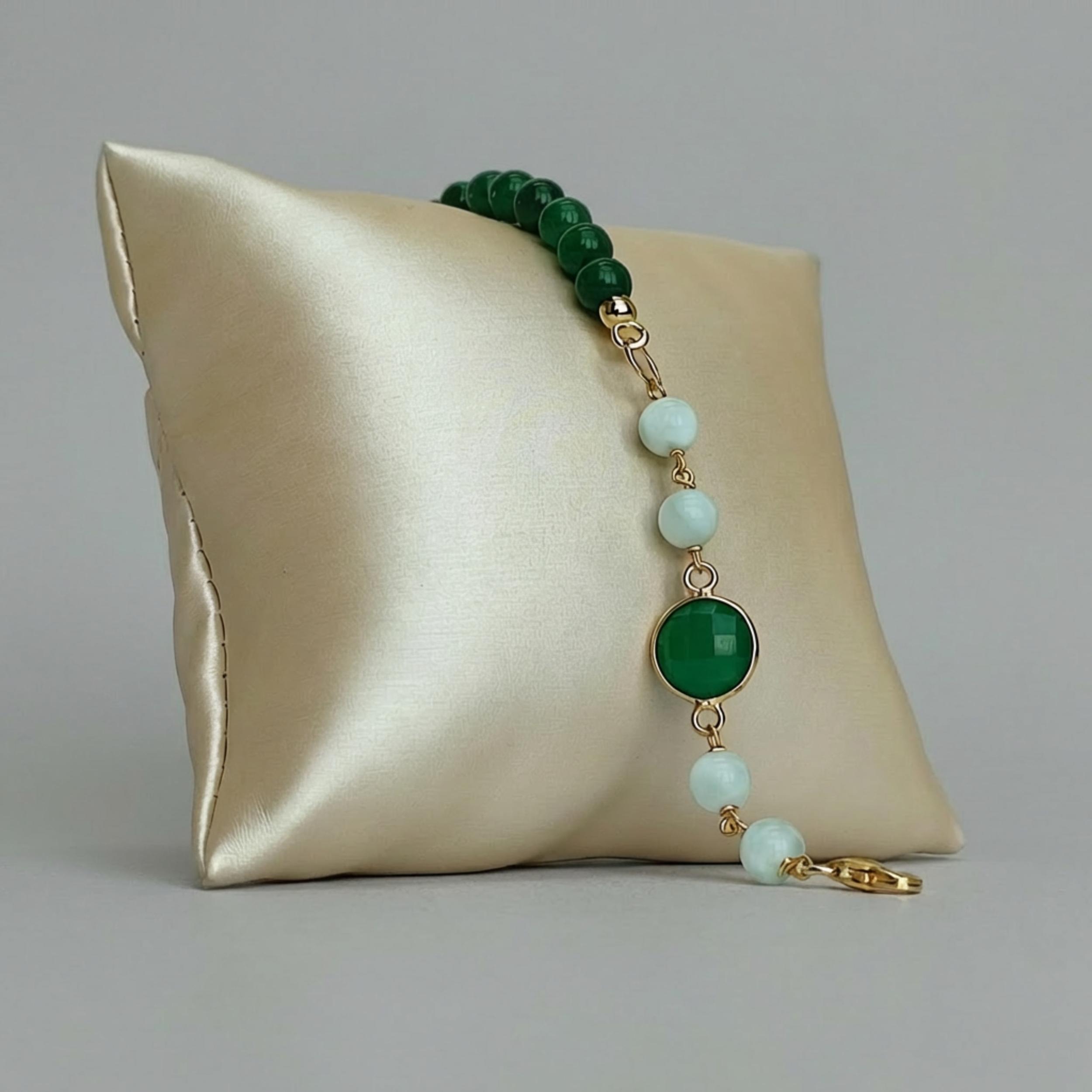 Brățară din agat verde smarald, diaspor verde și cuarț verde hidrotermal.