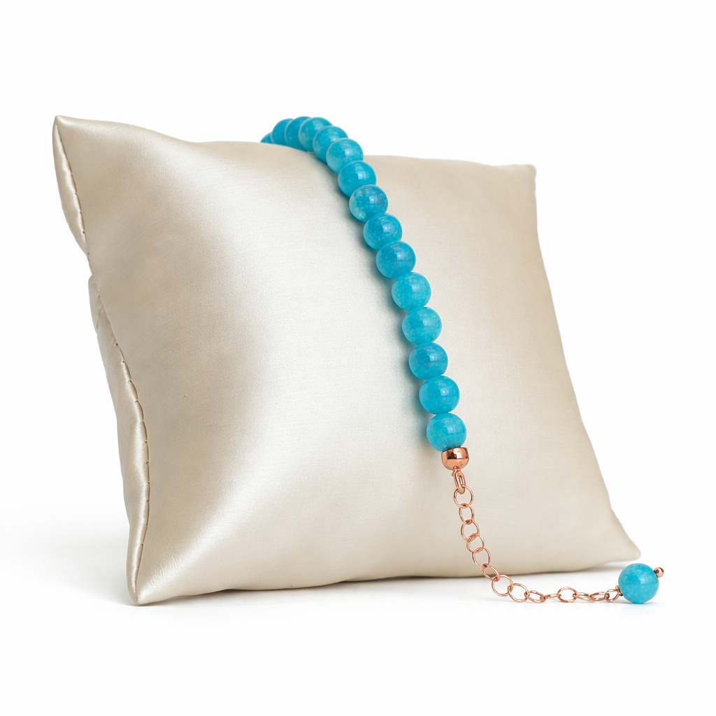 Brățară din jad verde acvatic și cuarț hidrotermal, cu sfere de 6 mm.