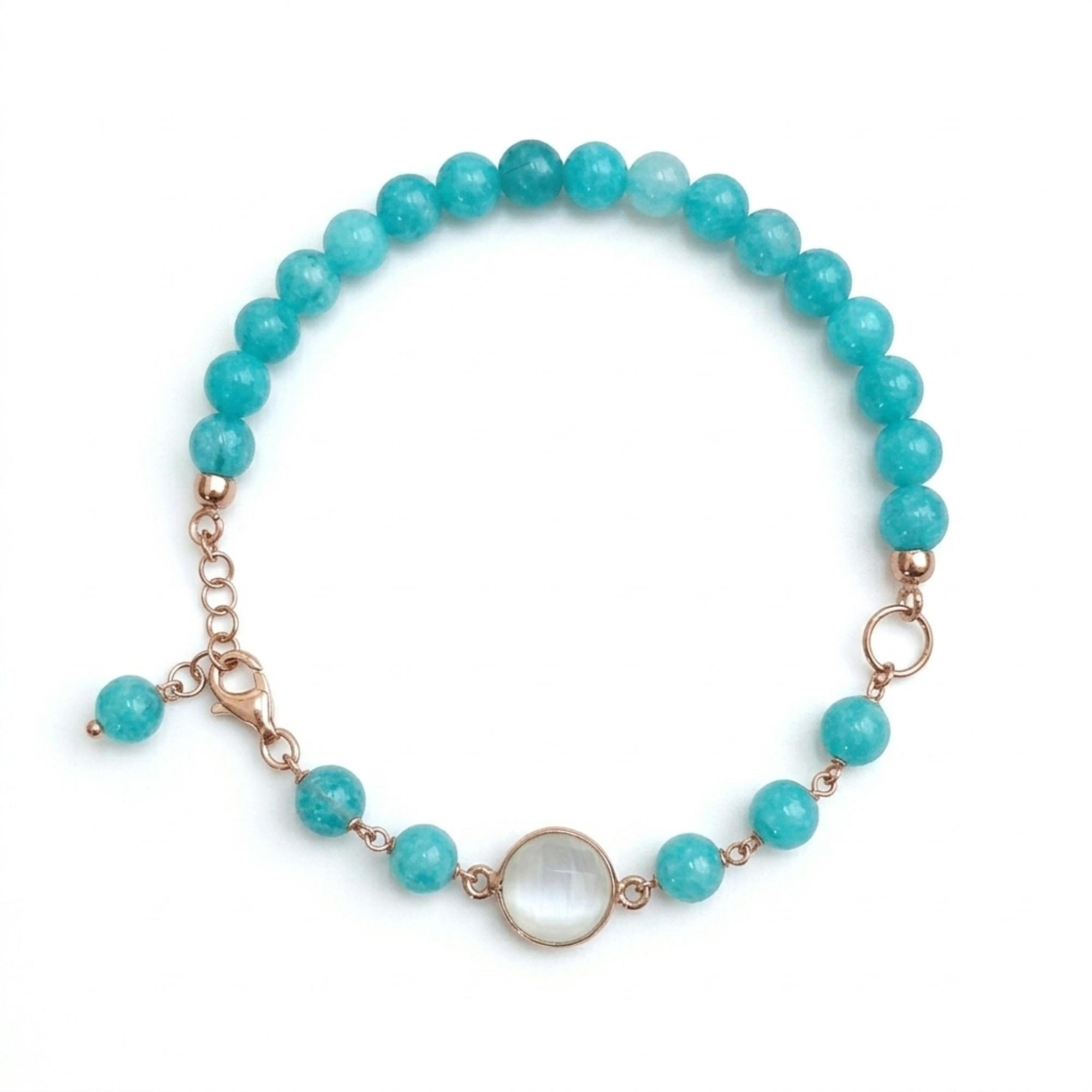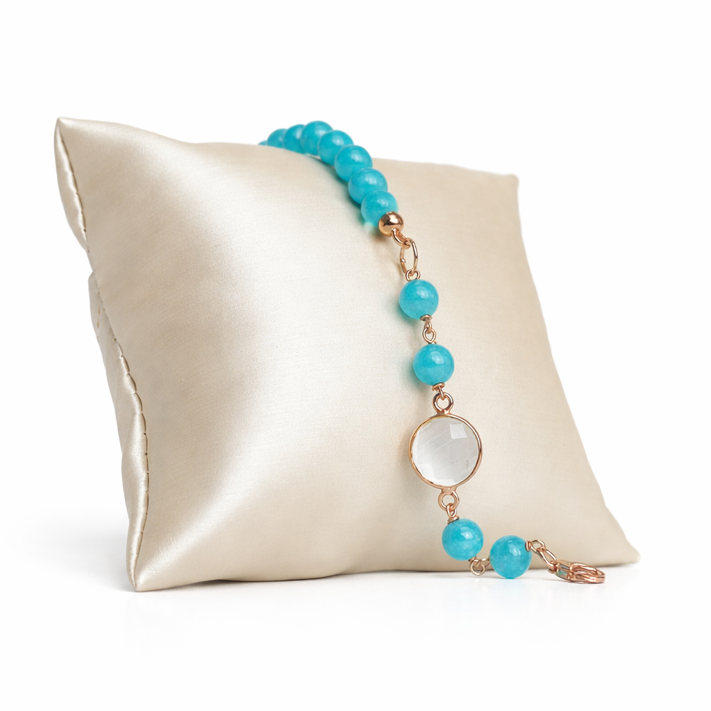 Brățară Lilou din jad verde acvatic și cuarț.