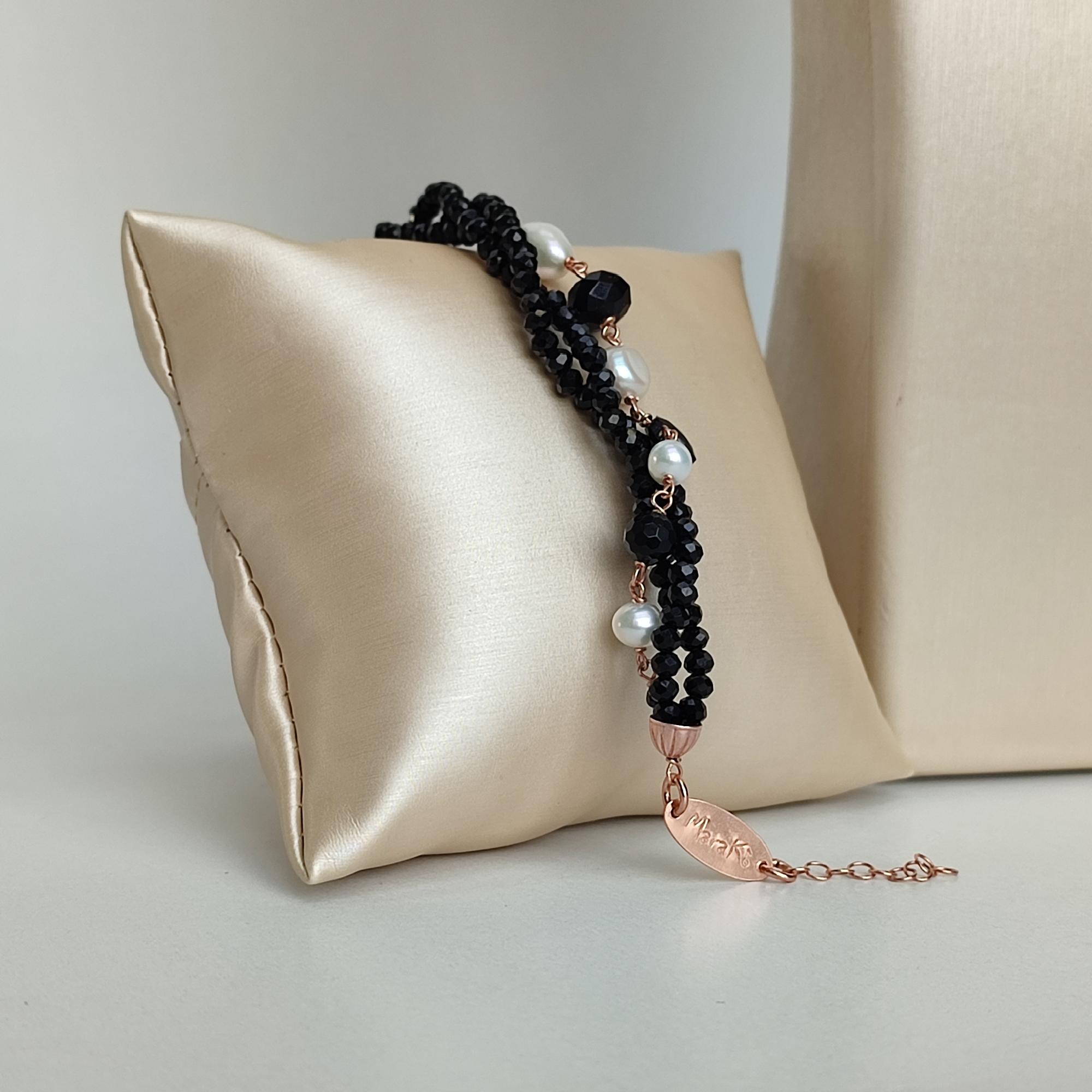 Brățară Waterlily din agat negru, spinel și perle.