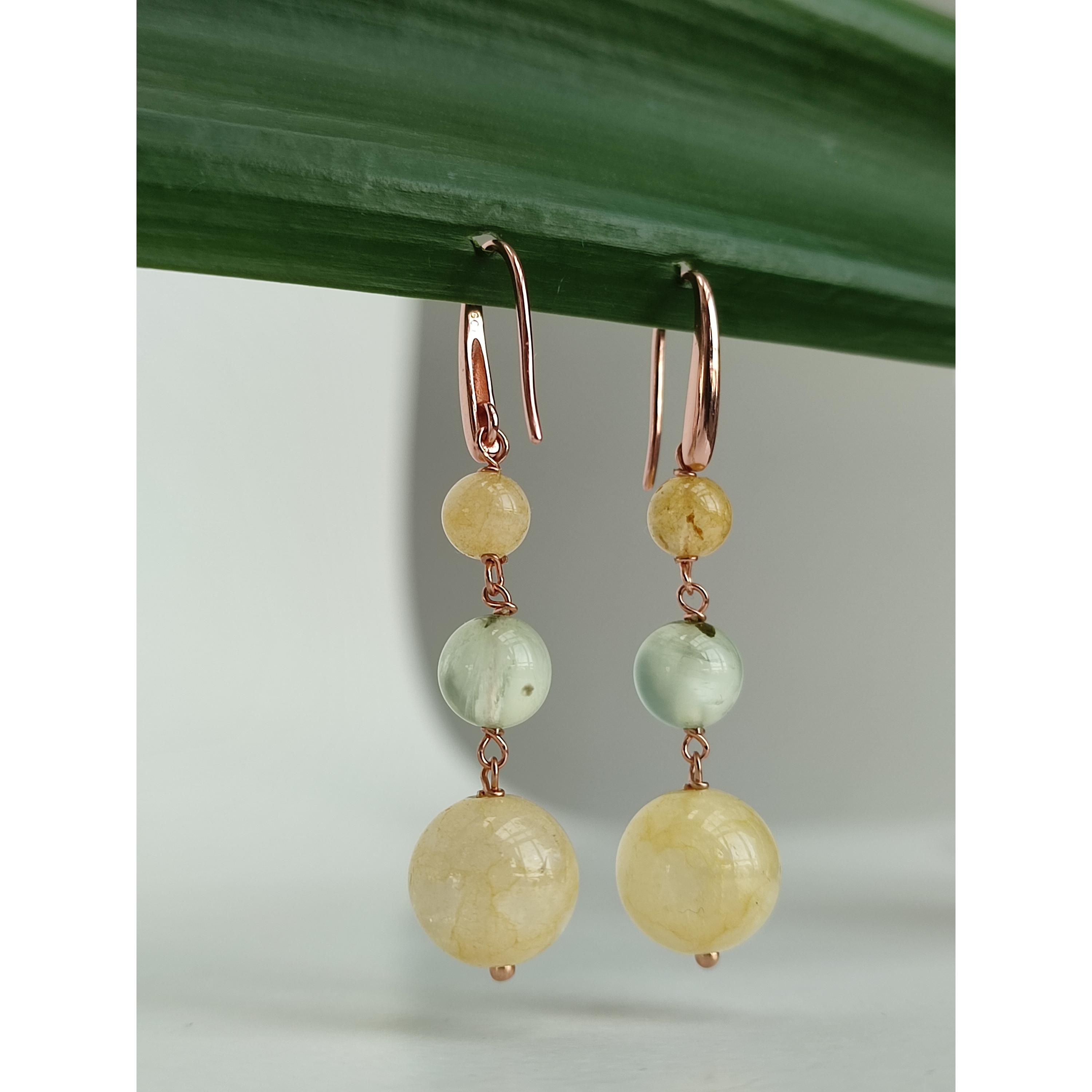 Cercei din agat galben și cuarț rutilat verde.
