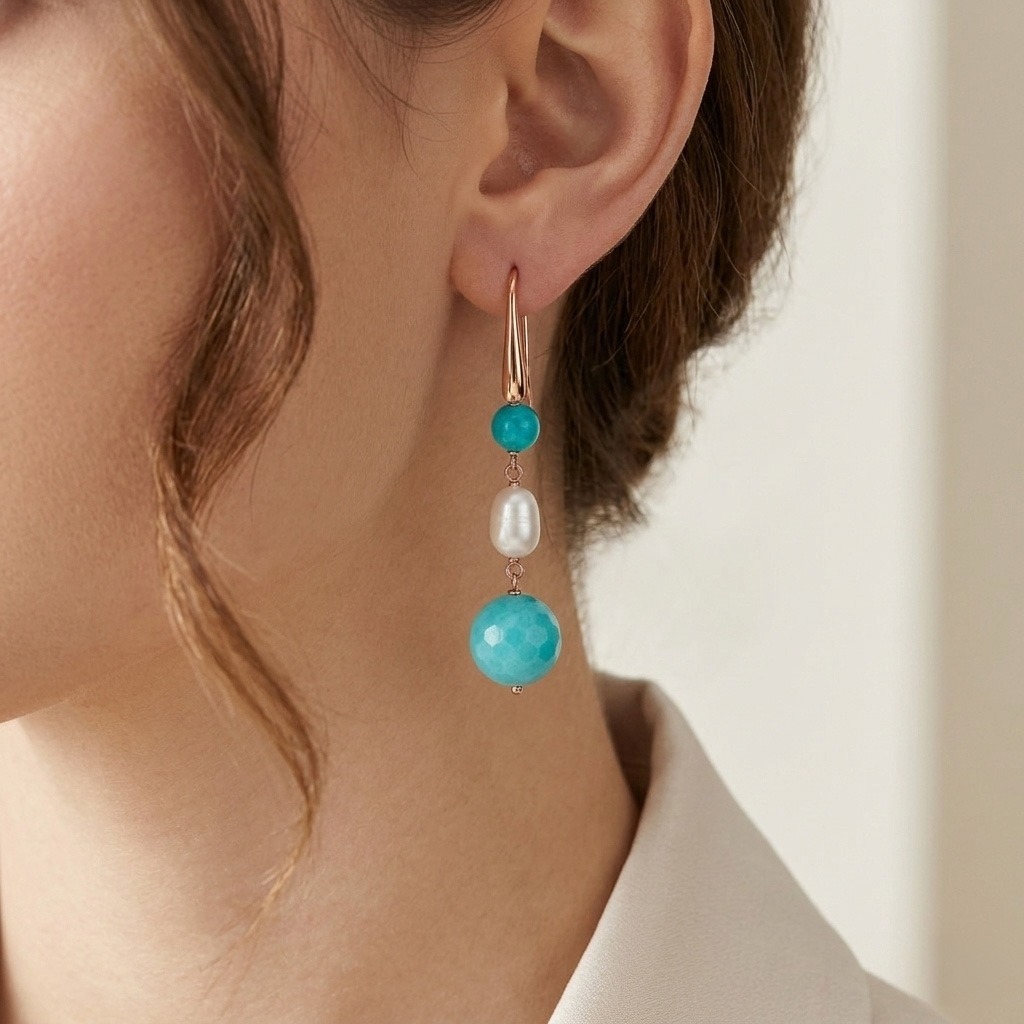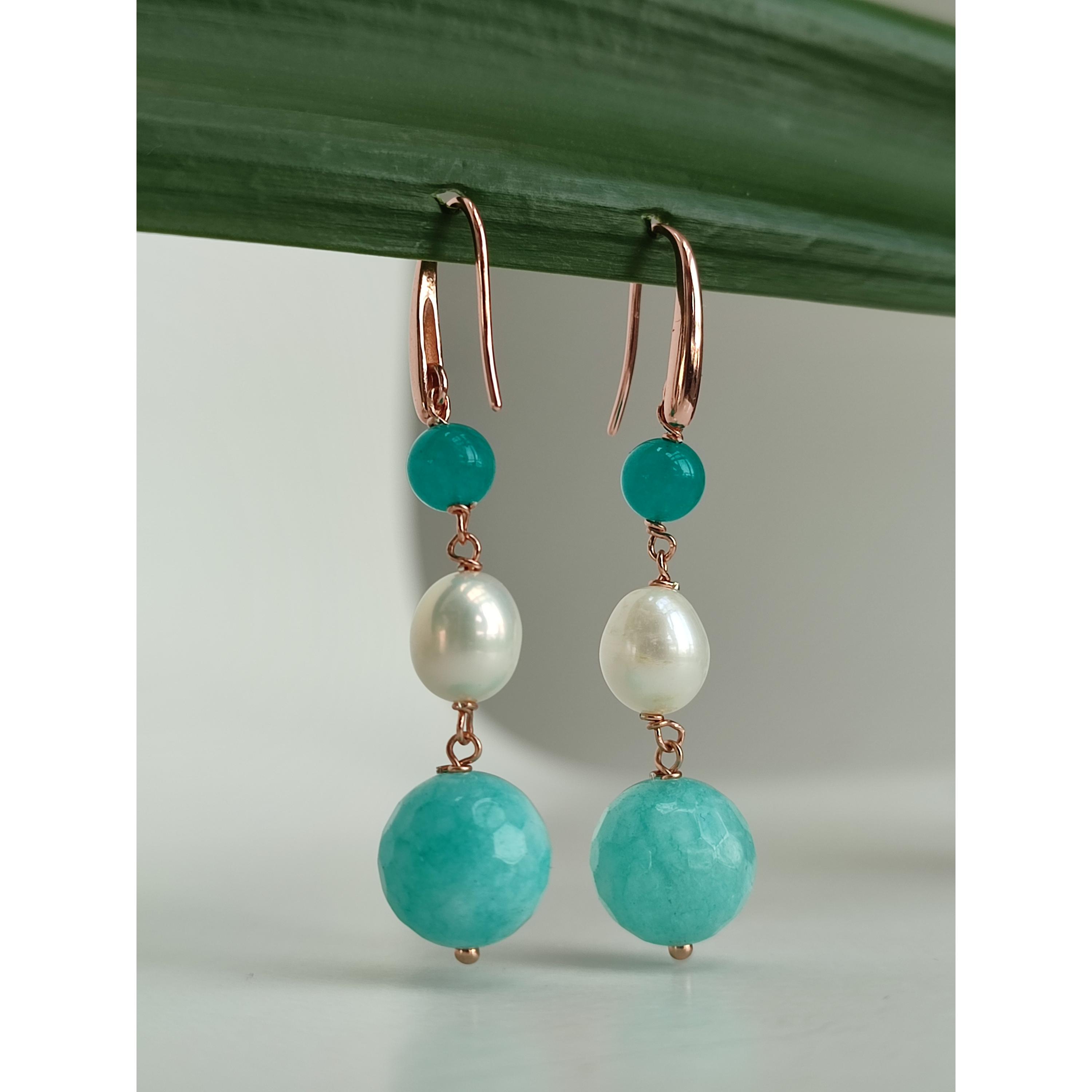 Cercei Dream din jad verde acvatic și perle.