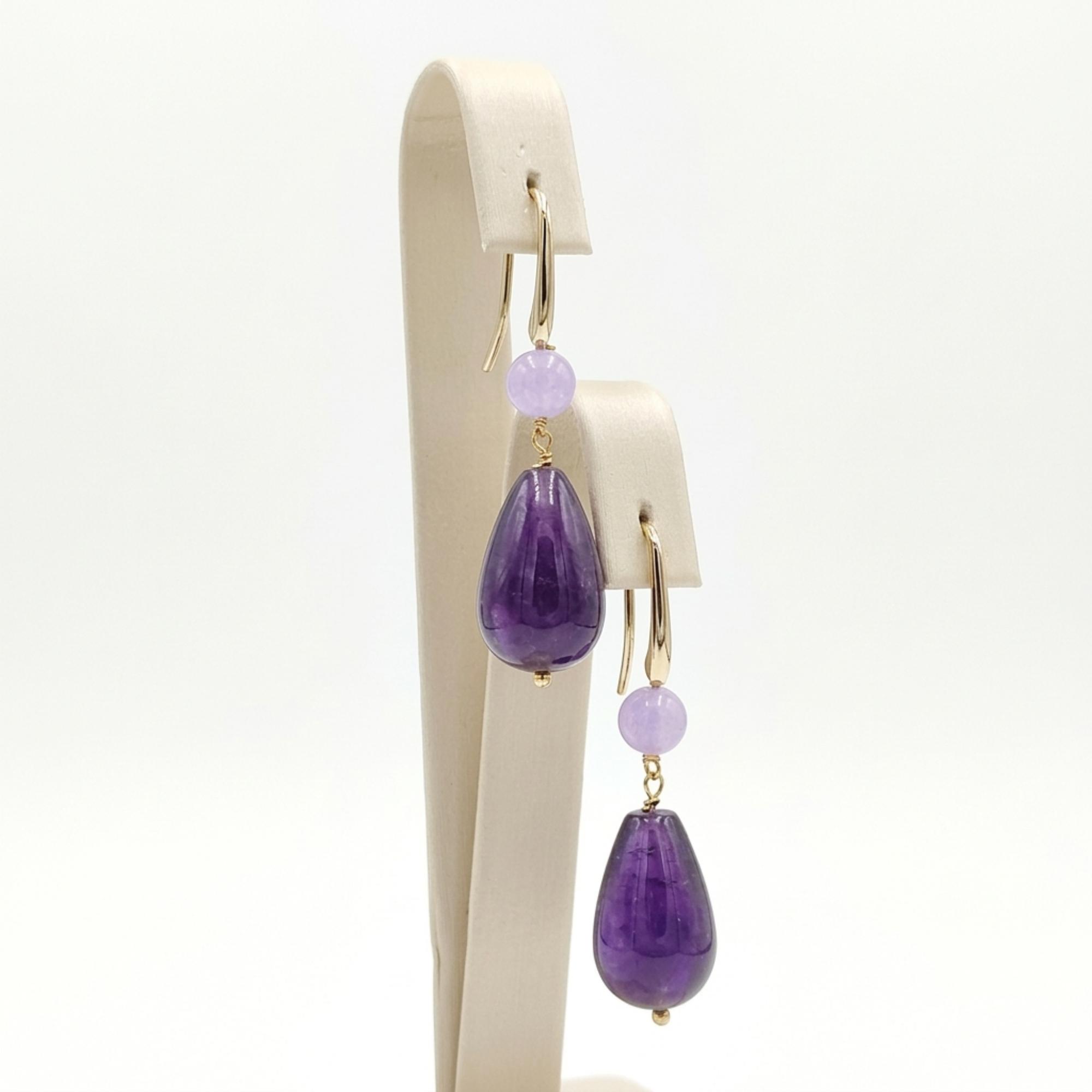 Cercei Goccia din jad lavandă și violet.