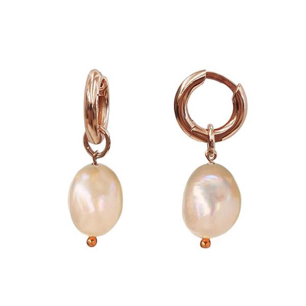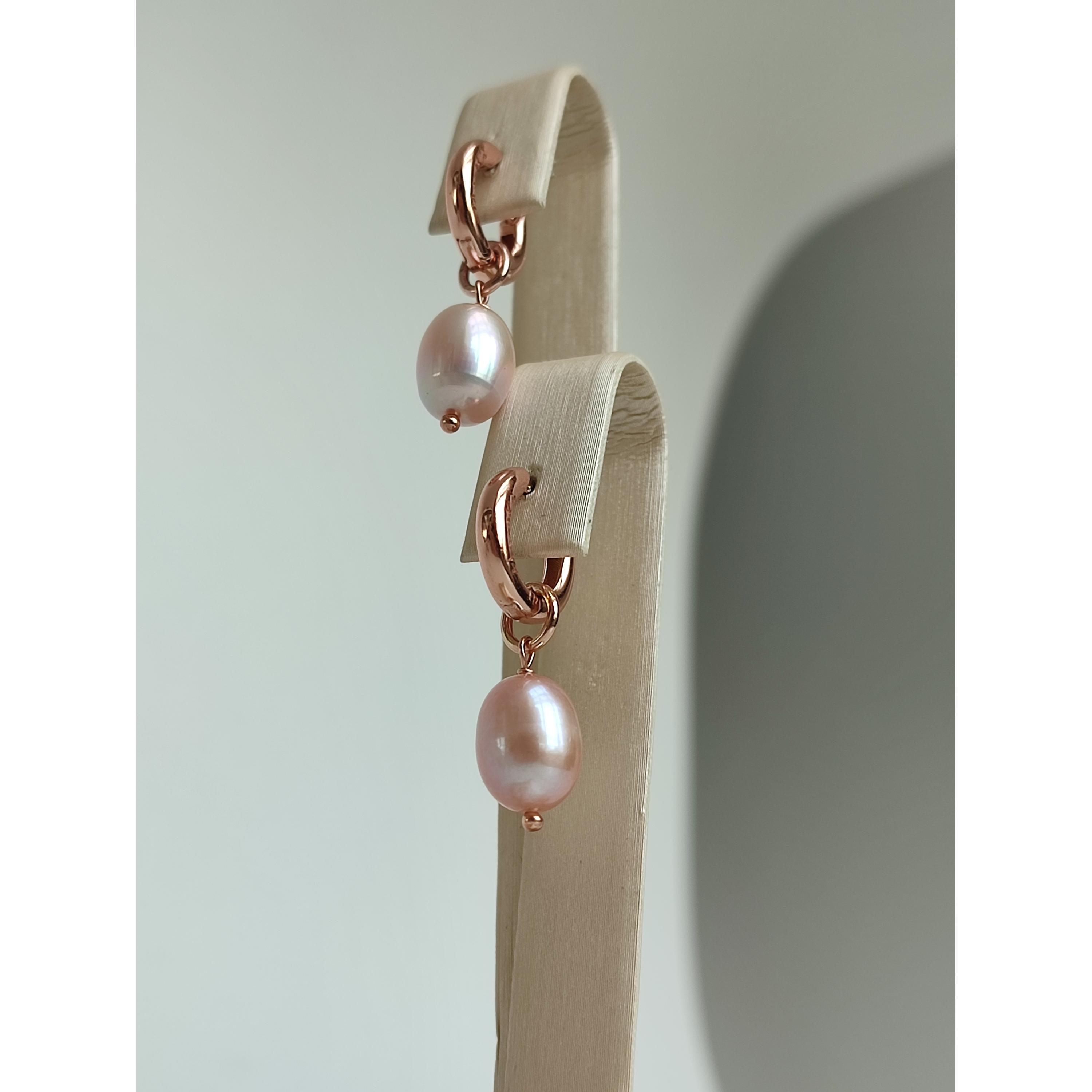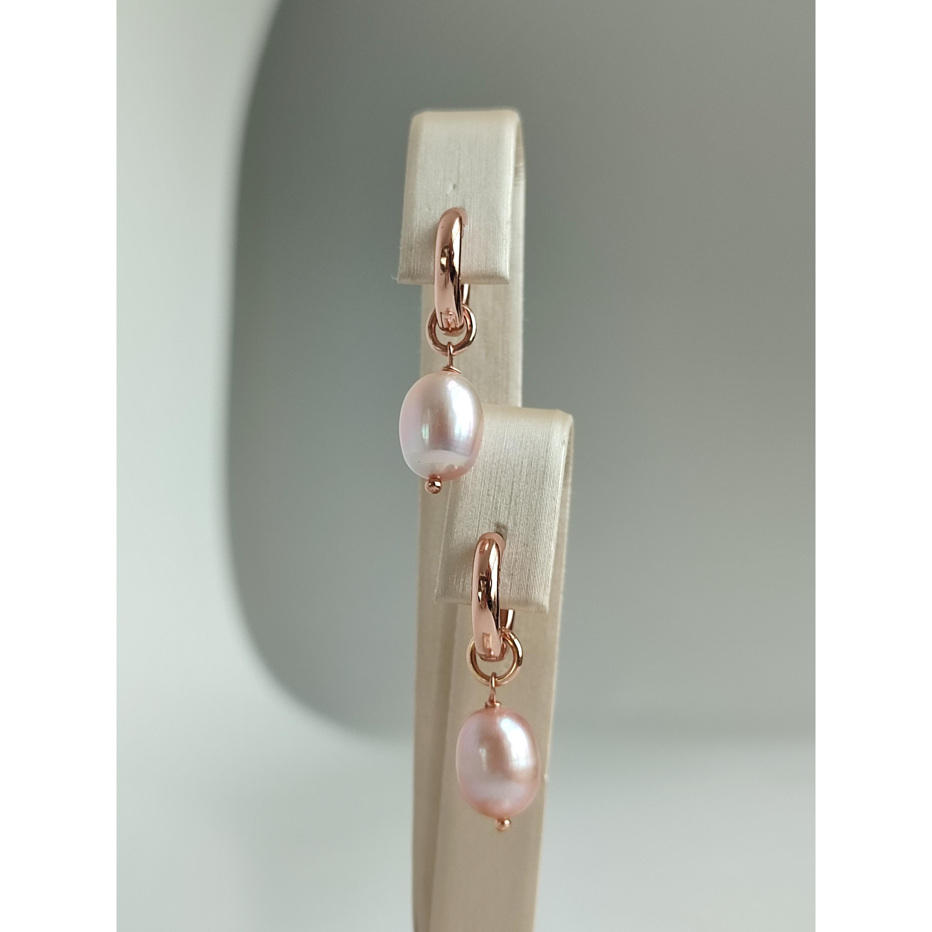 Cercei din argint placat cu aur roz și pandantive detașabile din perle de cultură roz.