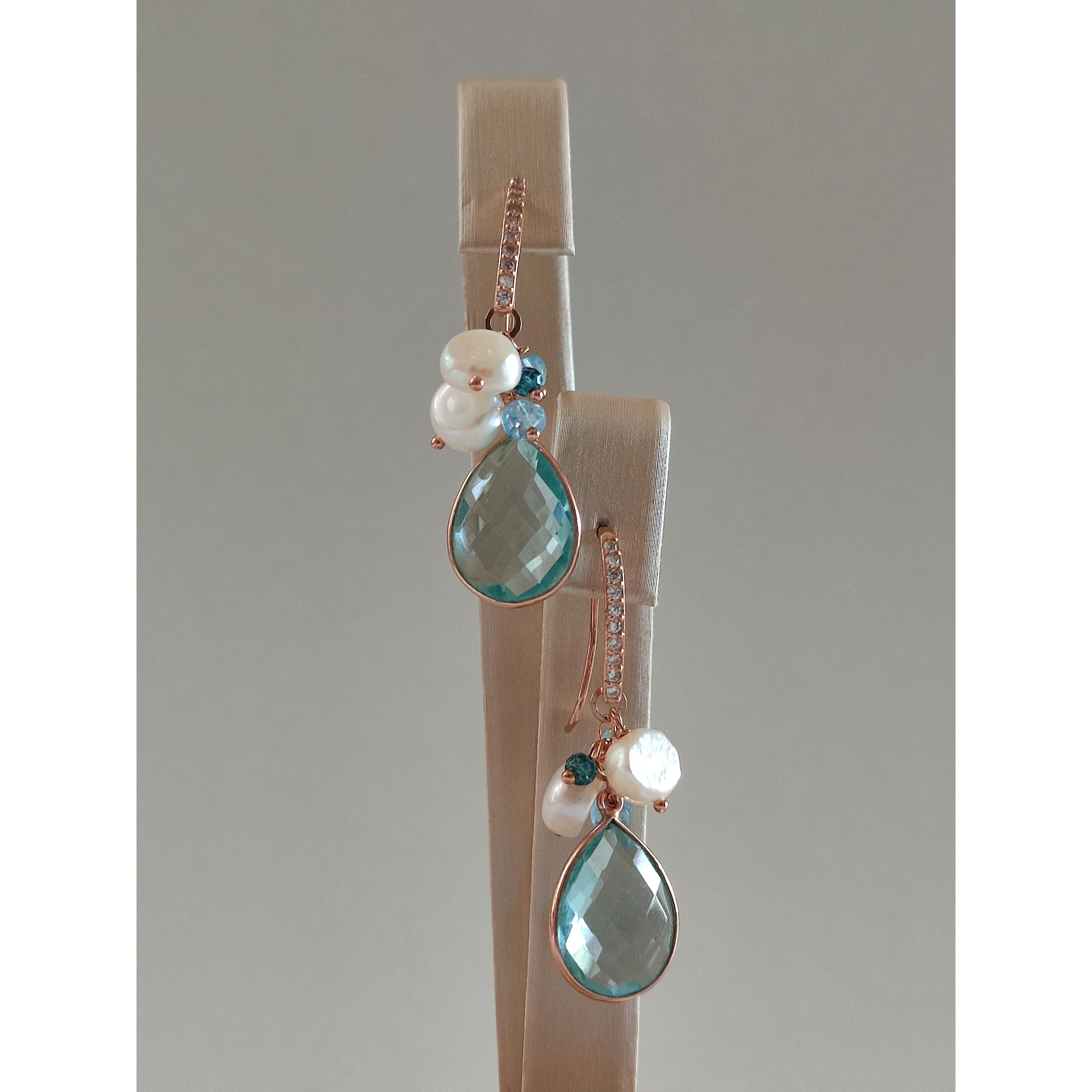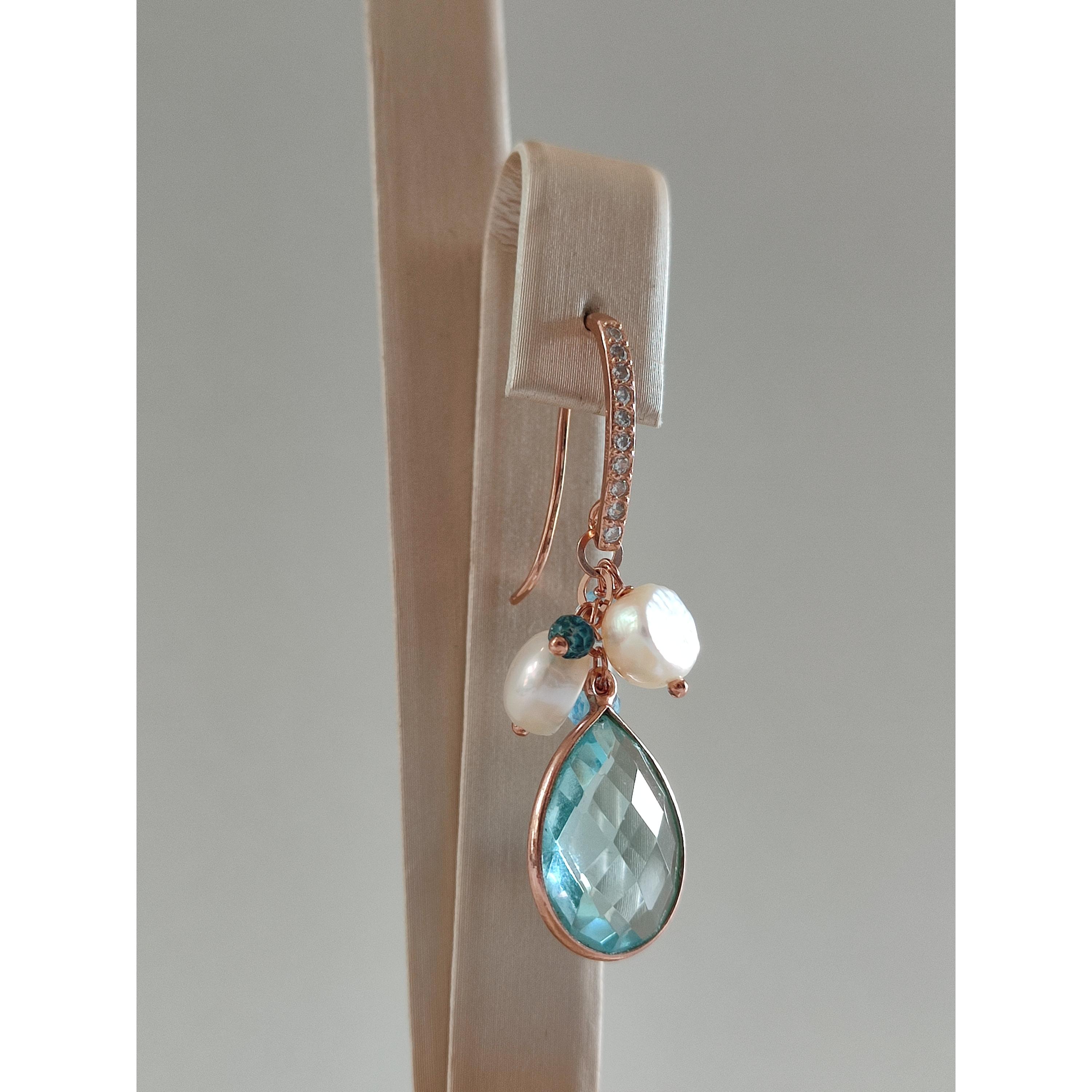 Cercei din cuarț hidrotermal albastru celest, zirconiu și perle de cultură.