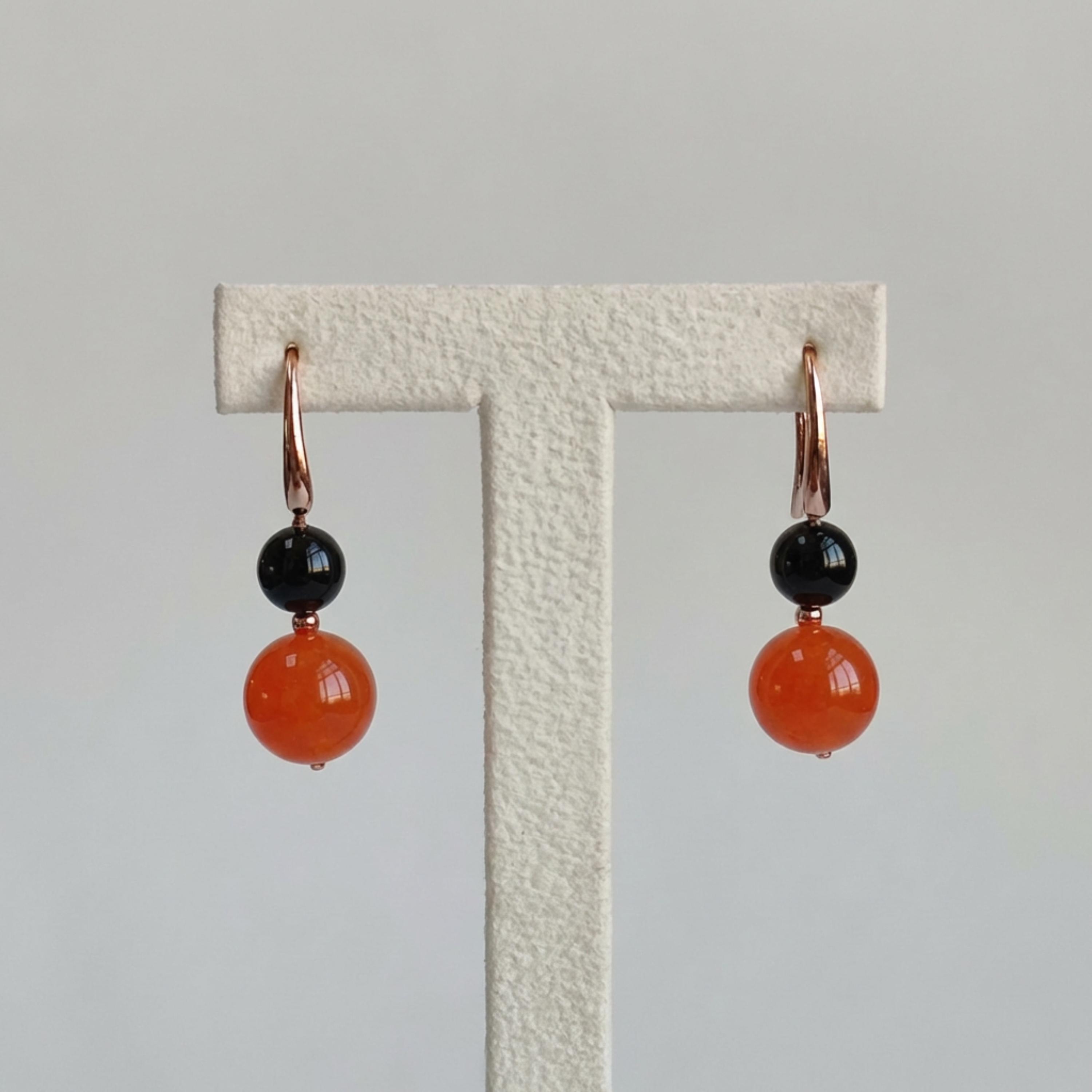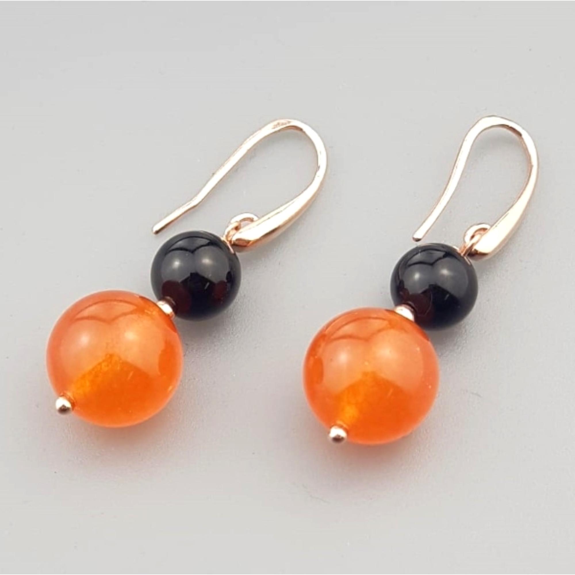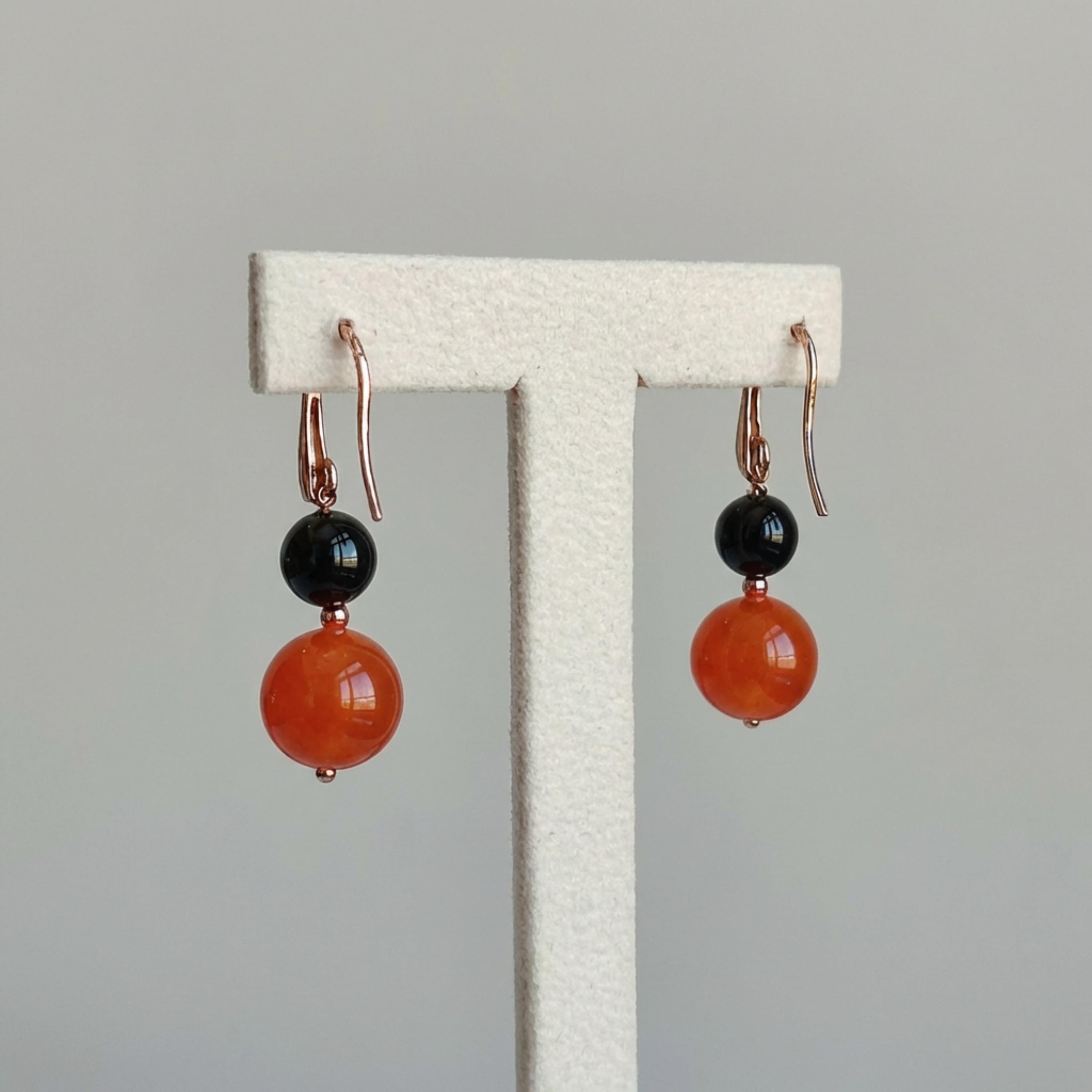 Cercei Mara din agat negru și portocaliu.