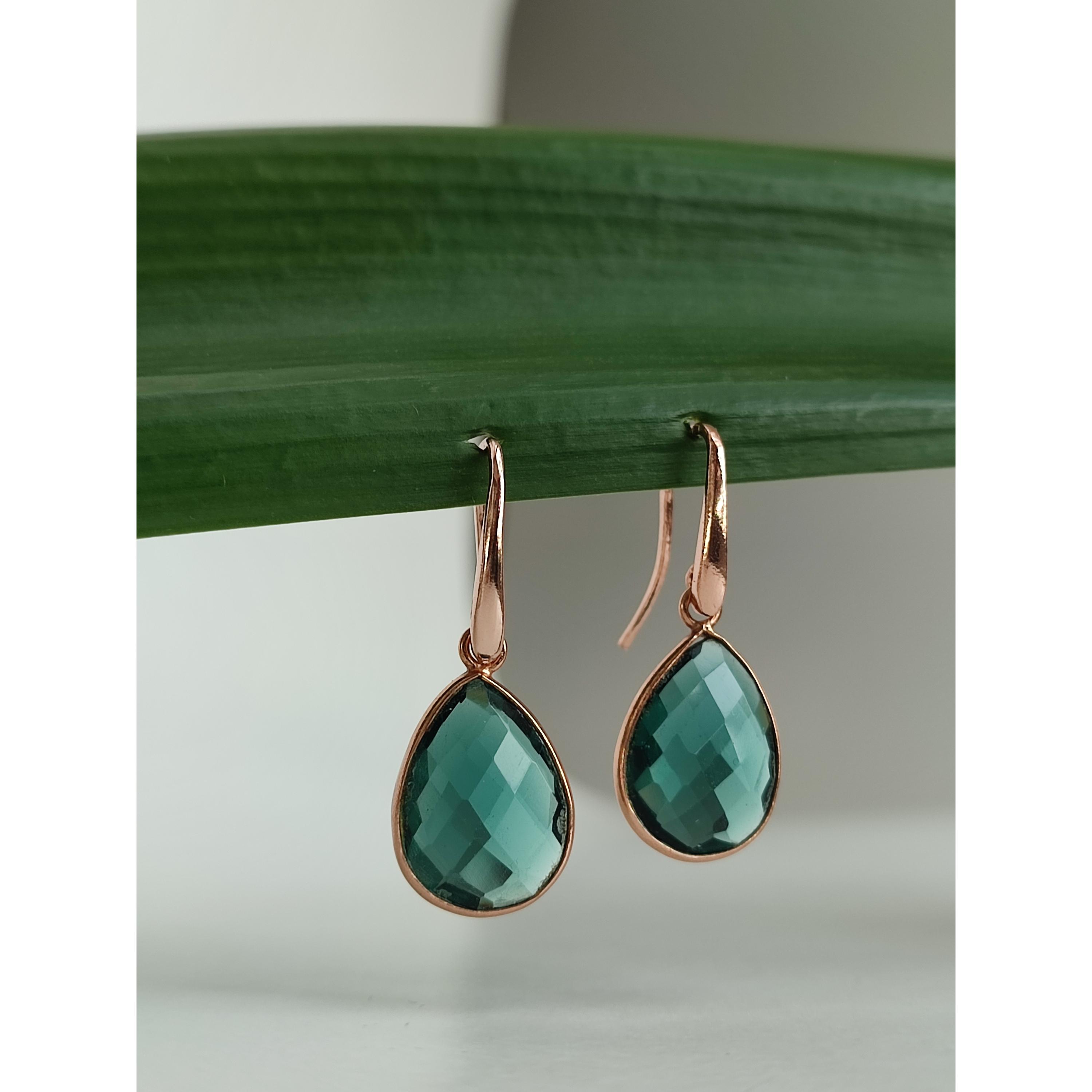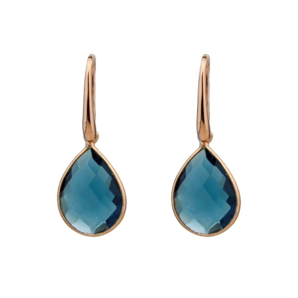 Cercei Roua din cuarț albastru safir hidrotermal fațetat, în formă de lacrimă, cu montură de 18 per 13 mm.