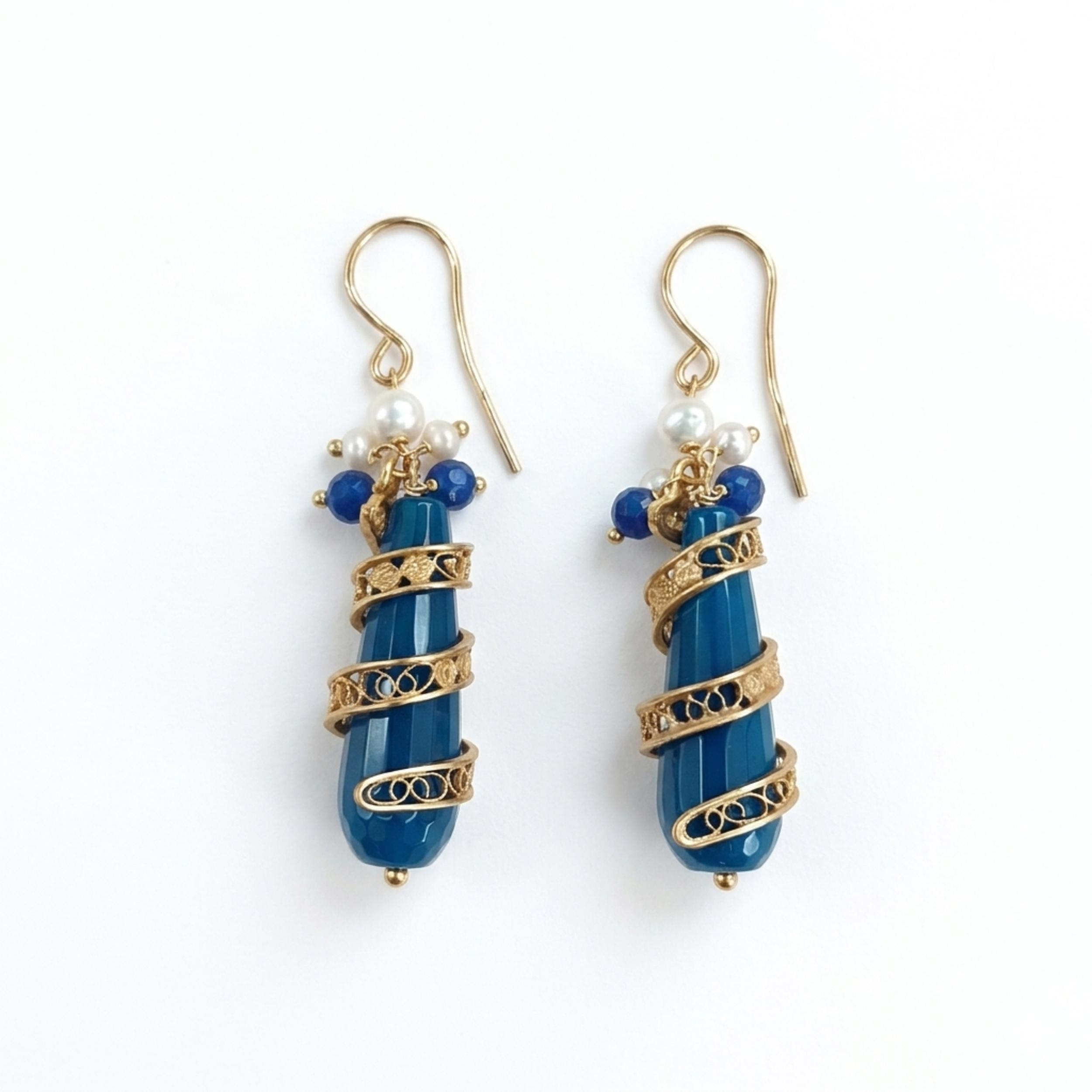 Cercei Sharon din agat albastru și spirale filigran.