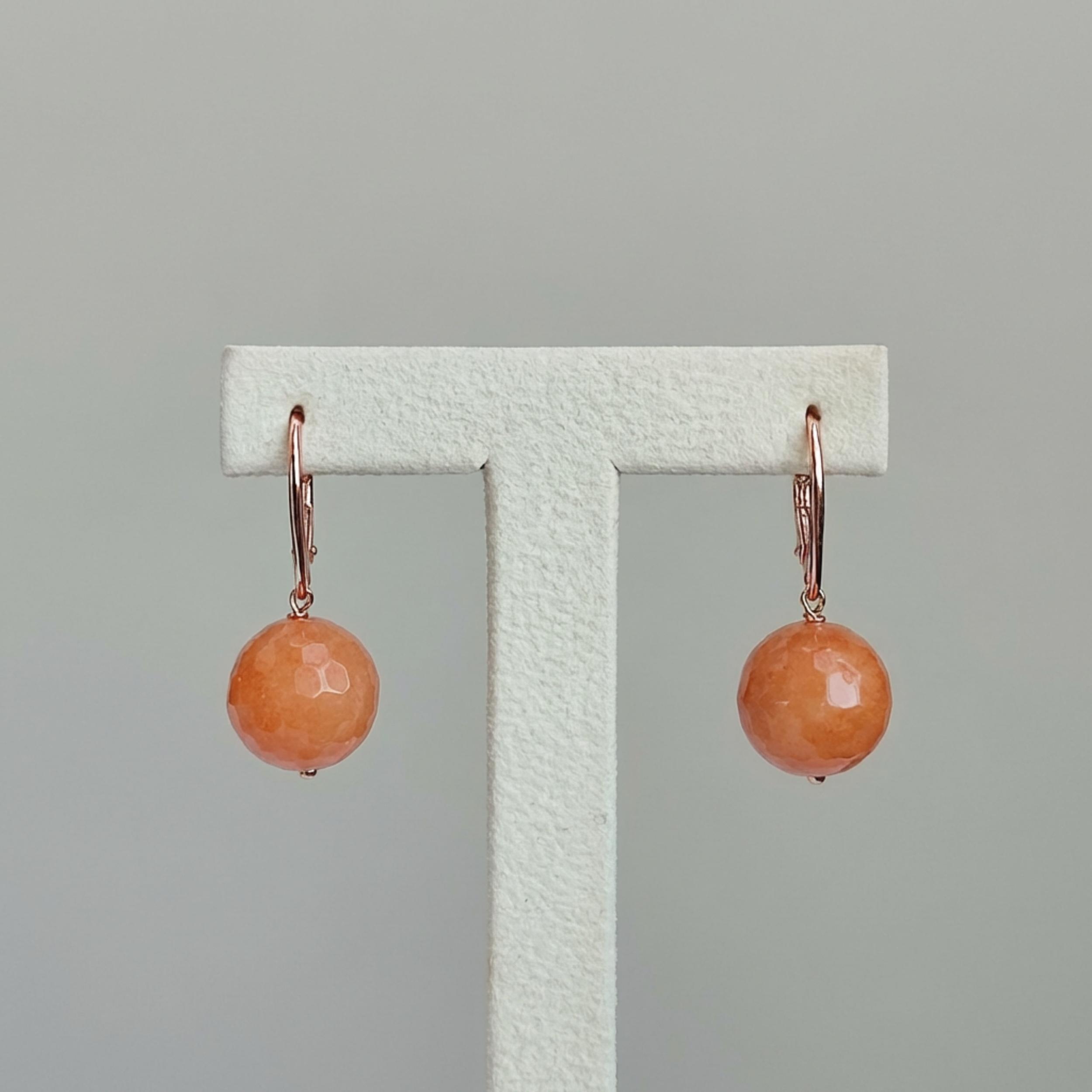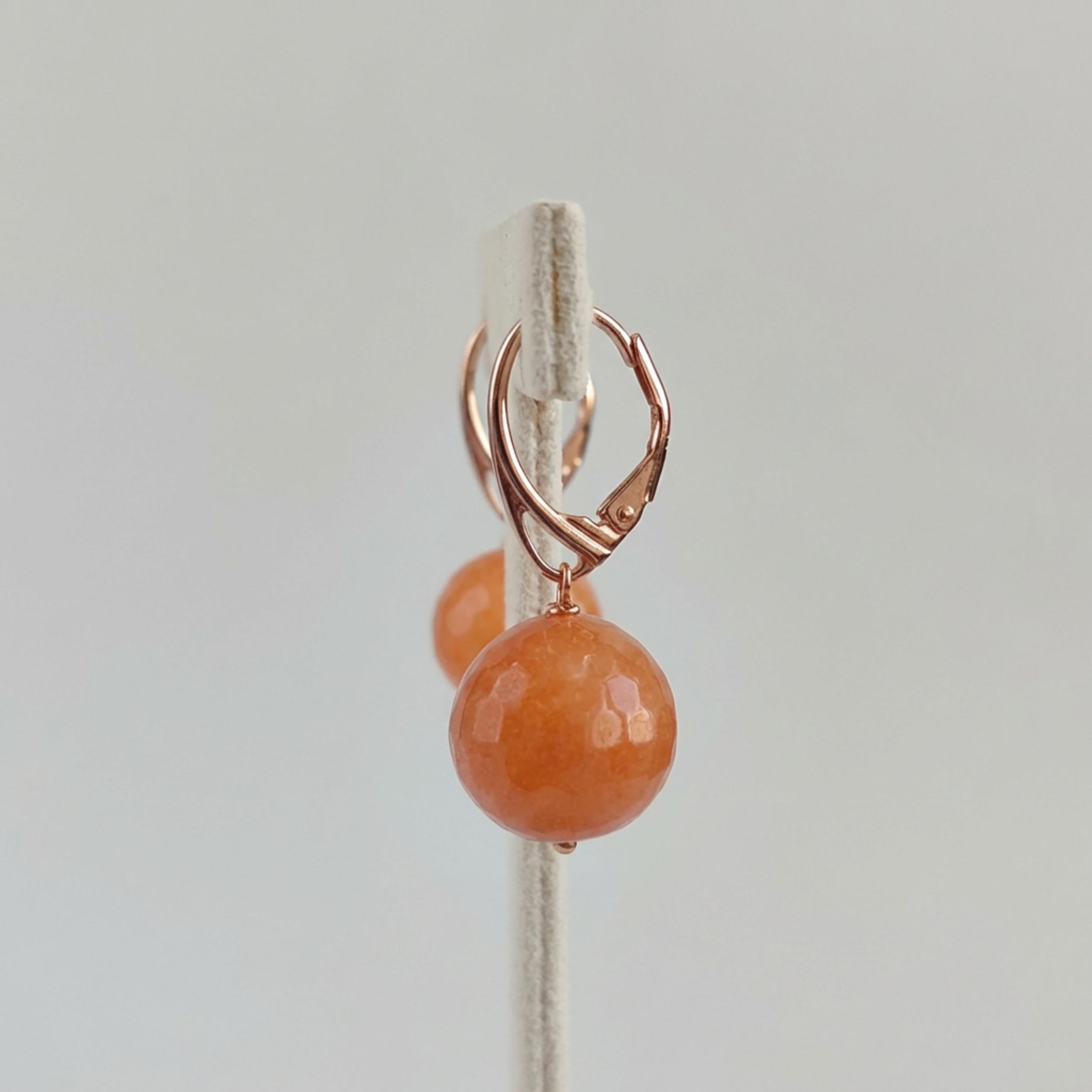 Cercei Vibrant din agat portocaliu, cu sfere 14 mm.
