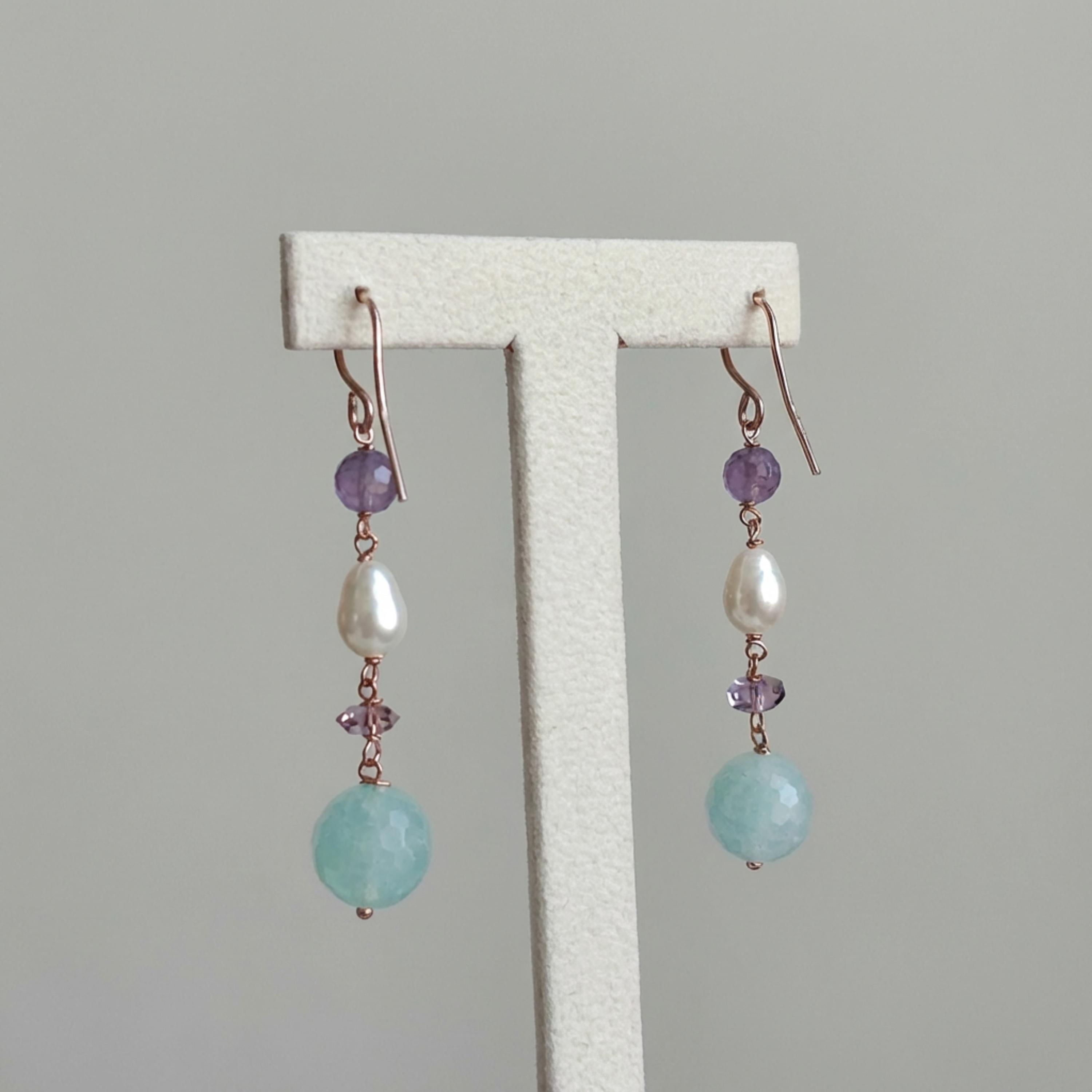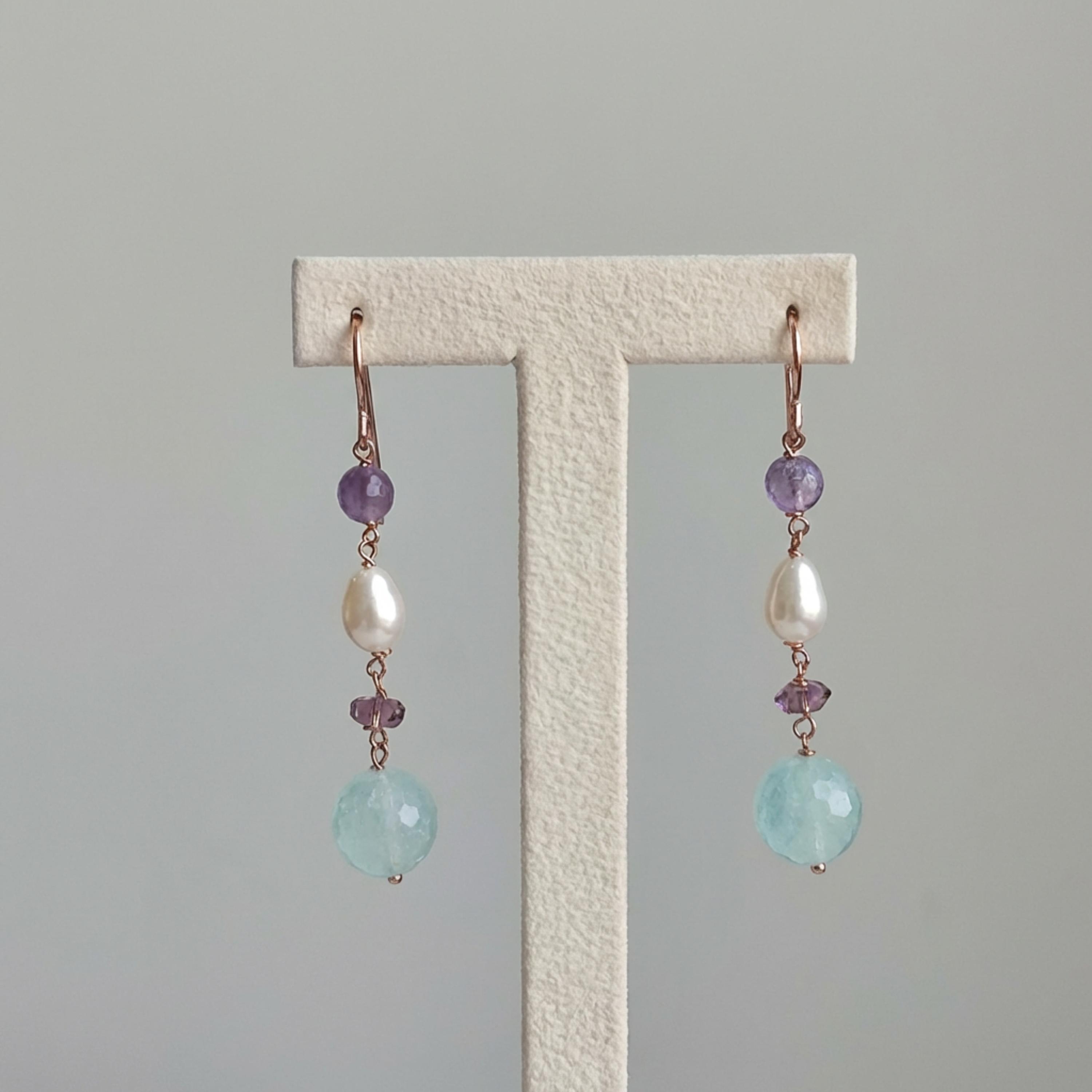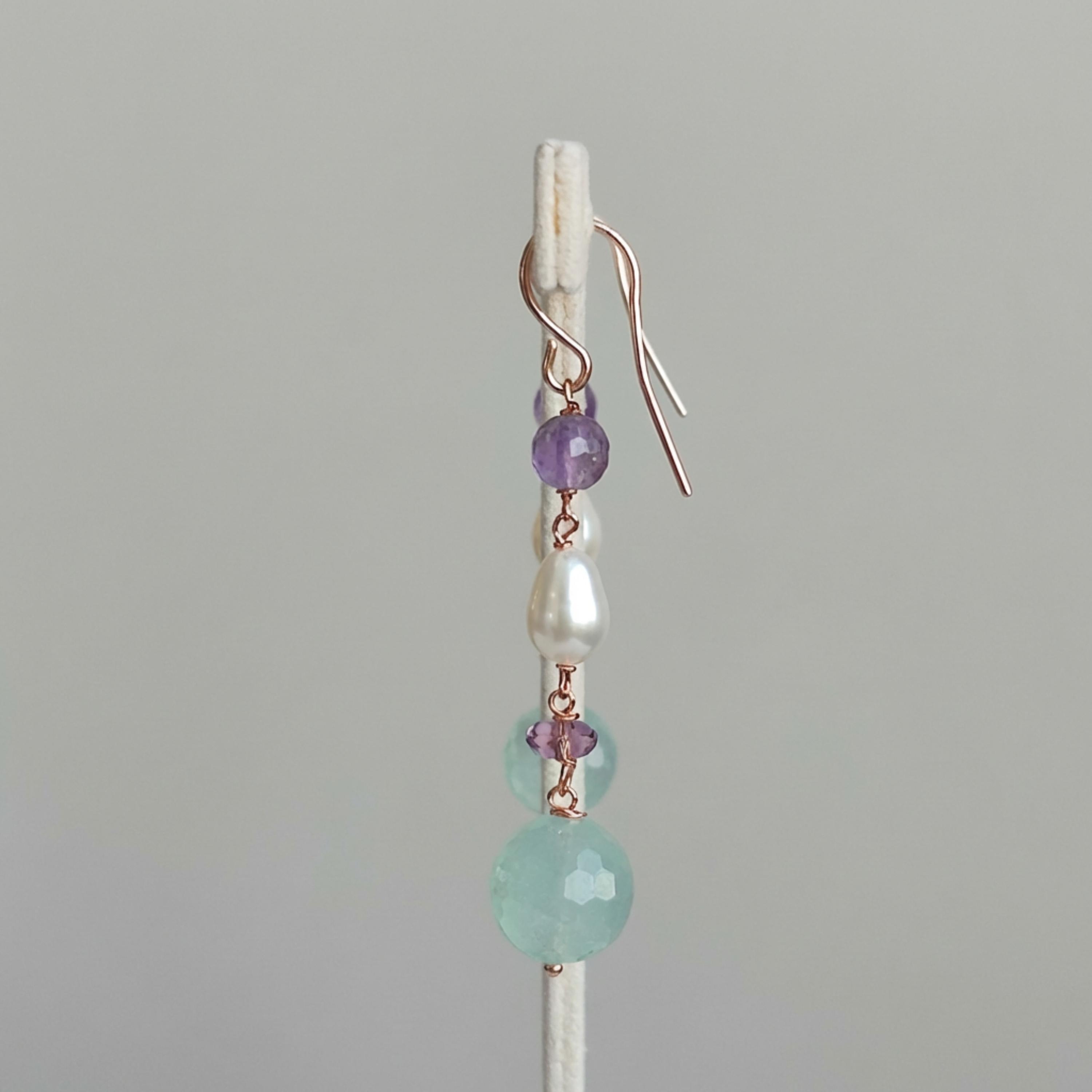 Cercei Vivien din fluorit, ametist și perle