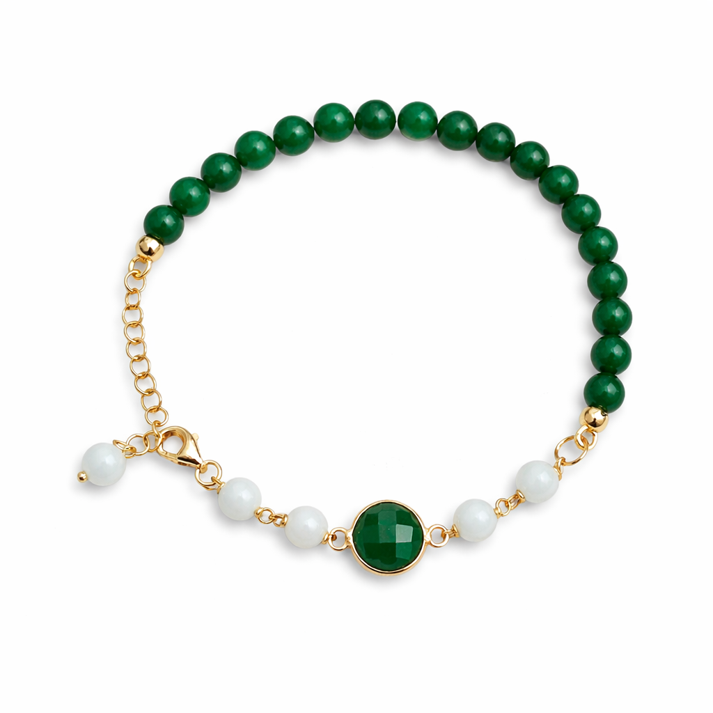 Colier Lilou din agat verde, diaspor și cuarț.