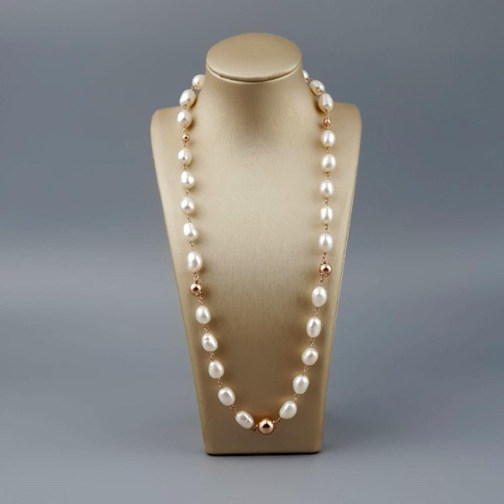 Colier rozariu din perle de cultură albe, cu sfere de 7 – 8 mm.