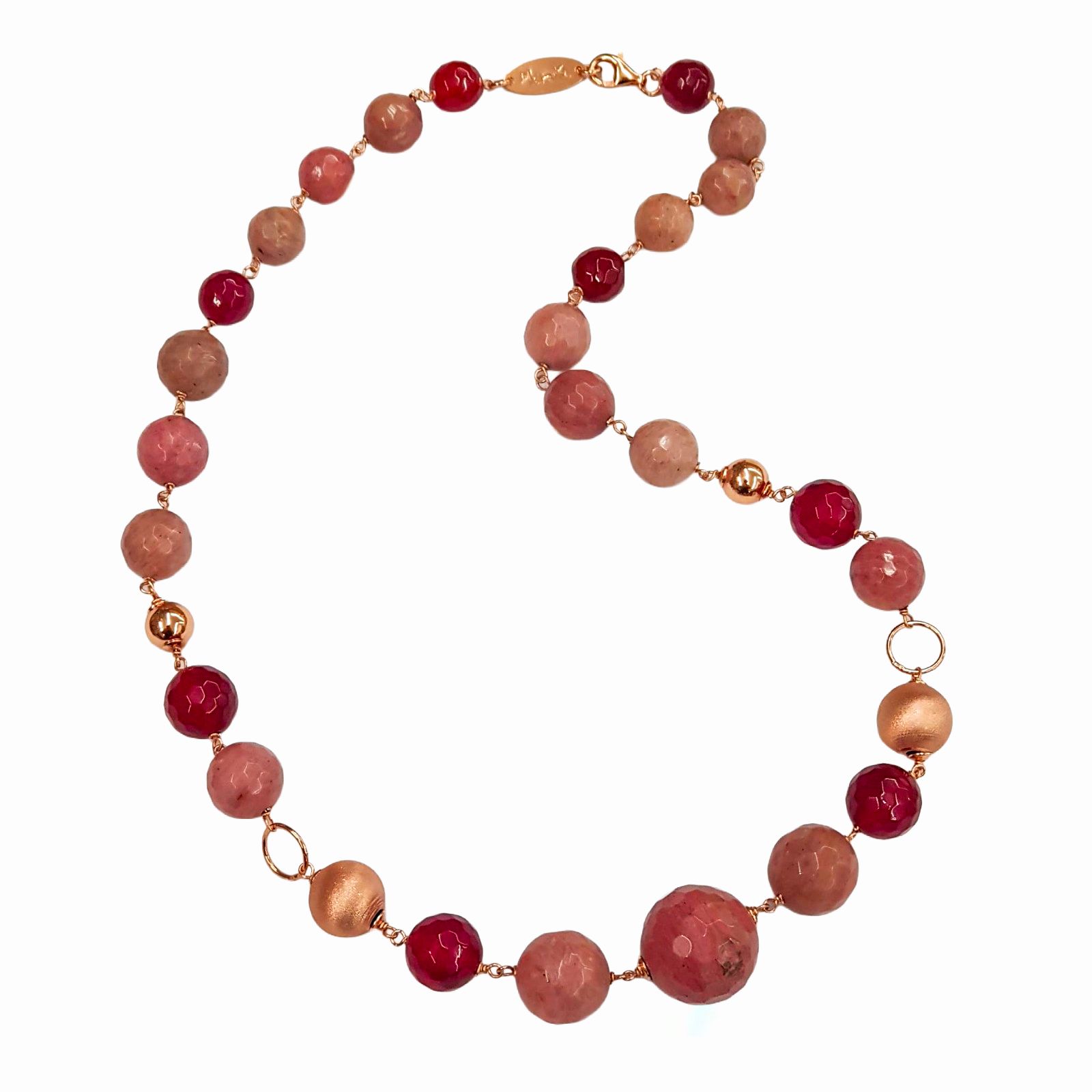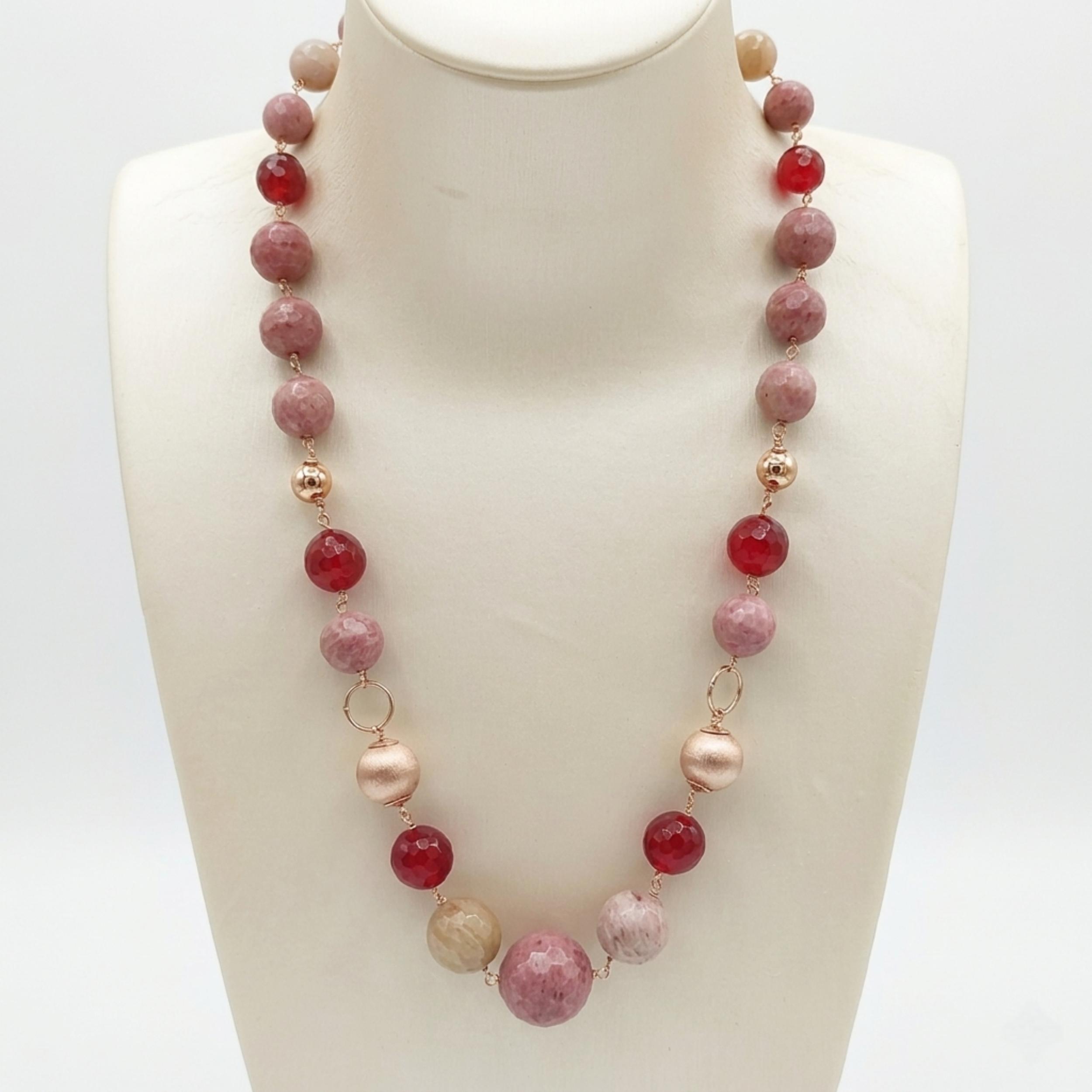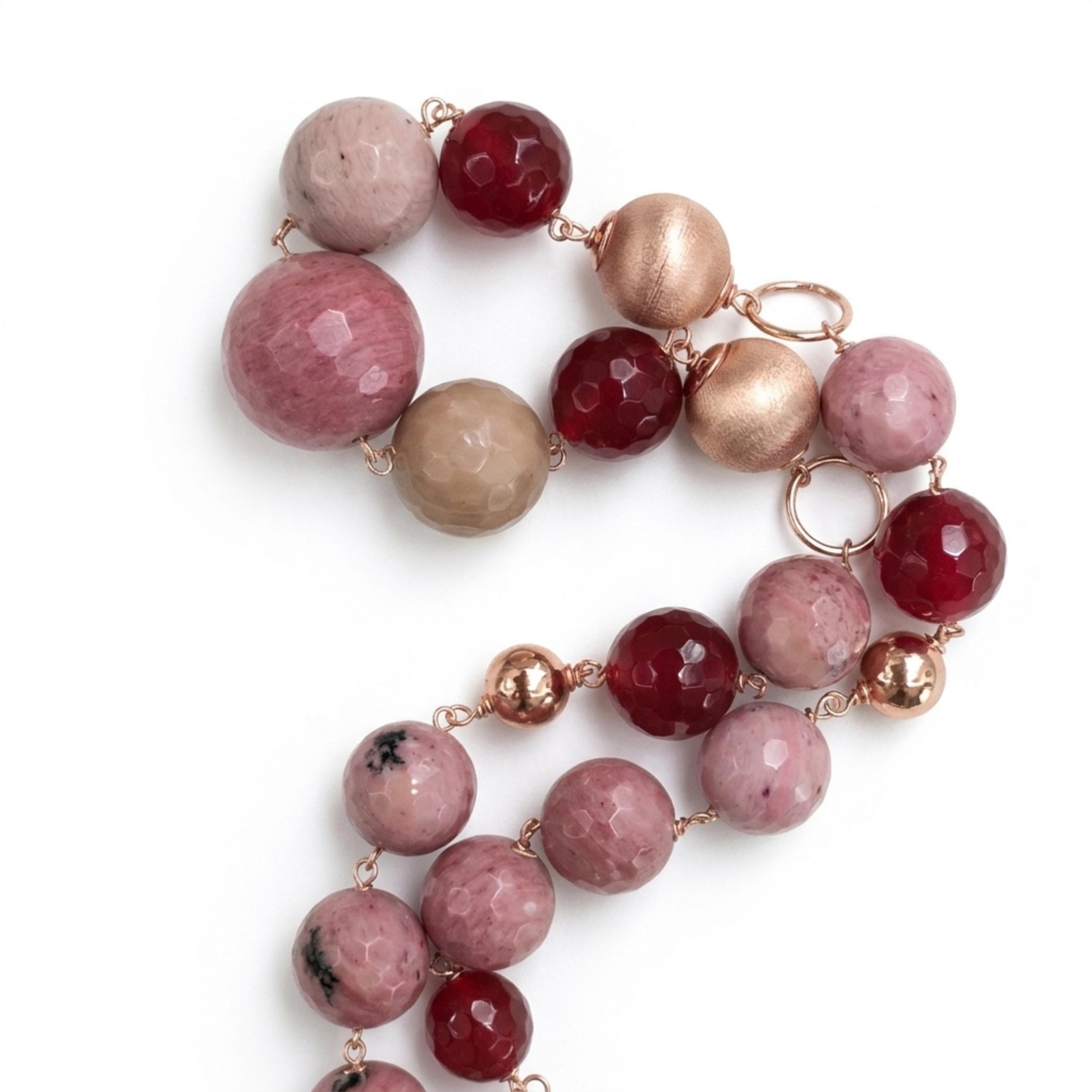 Colier din rodonit și agat rubiniu, cu sfere de 10 mm, până la 18 mm.