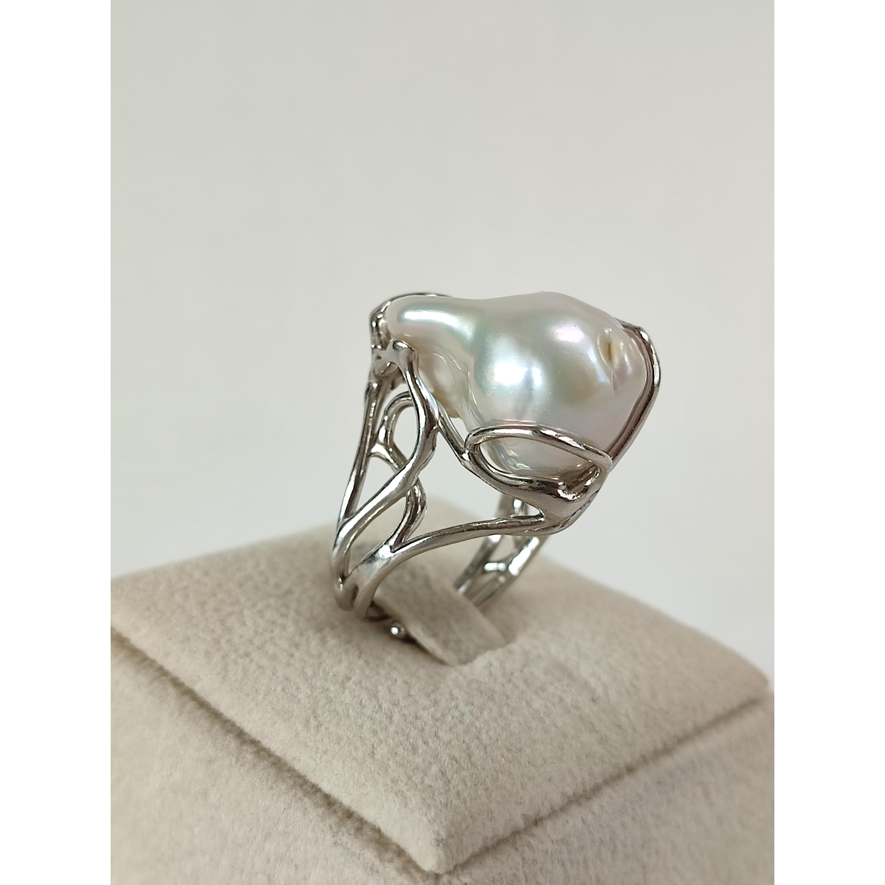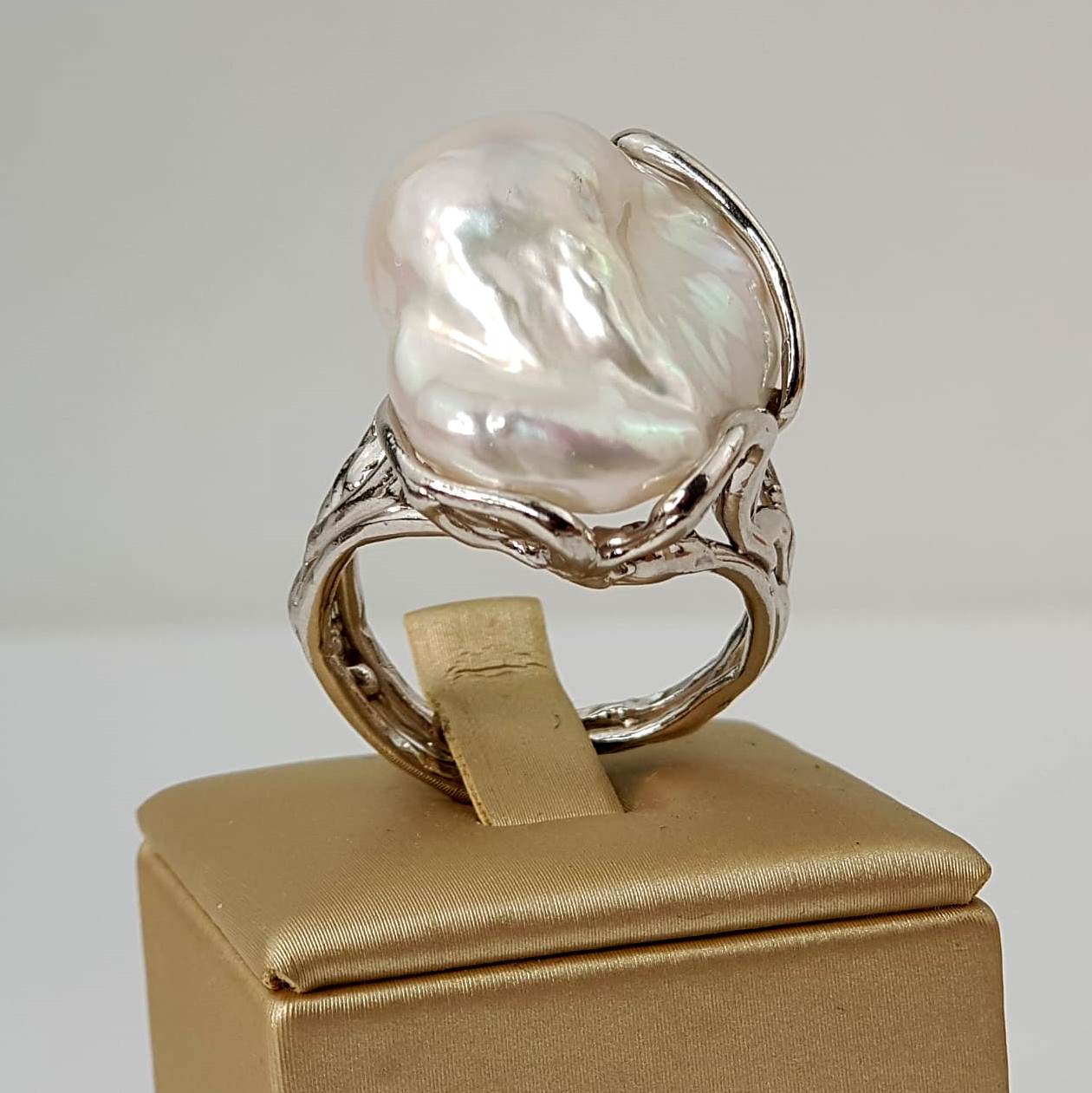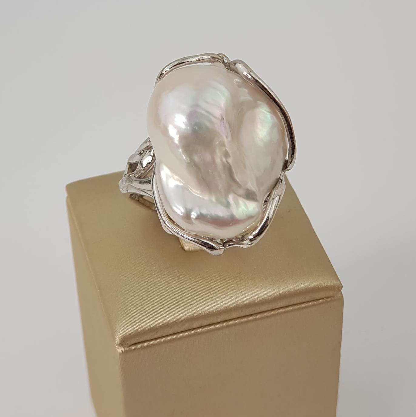 Inel cu o bază neregulată, distinctivă, din argint placat cu rodiu. Dimensiune larg ajustabilă.