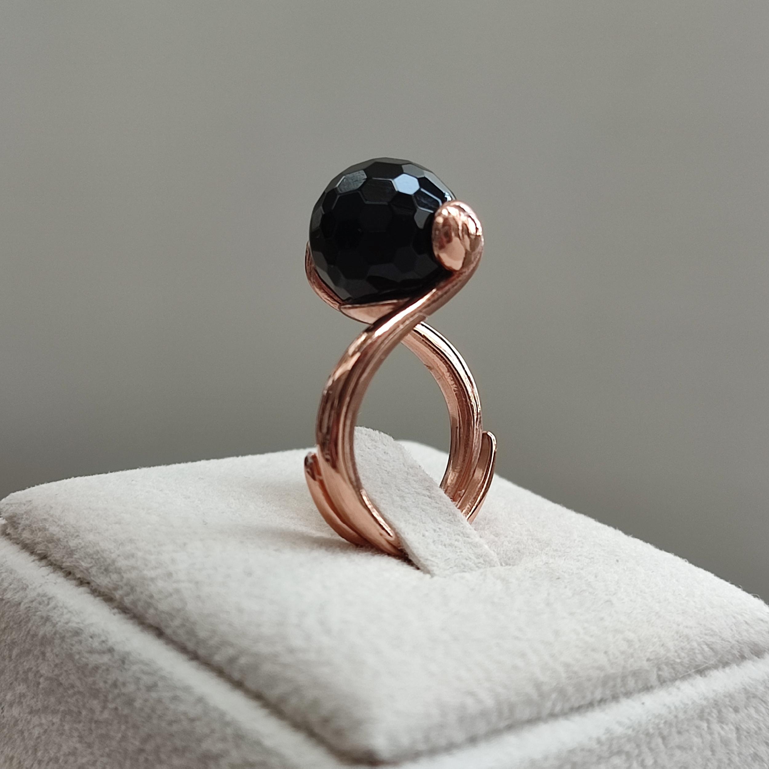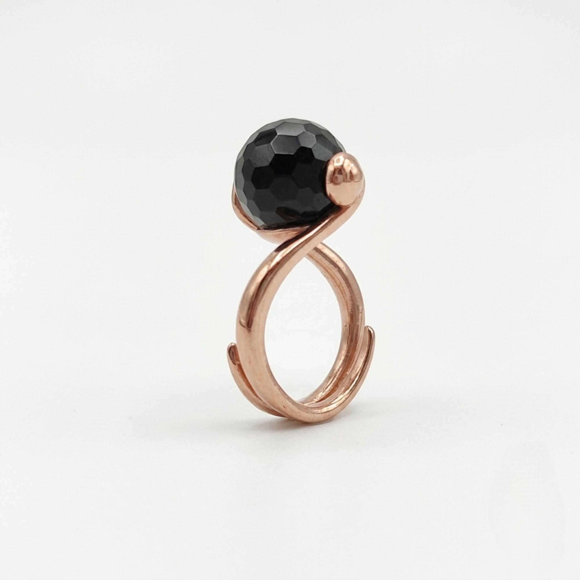 Inel reglabil, cu agat negru fațetat, cu sferă de 12 mm.