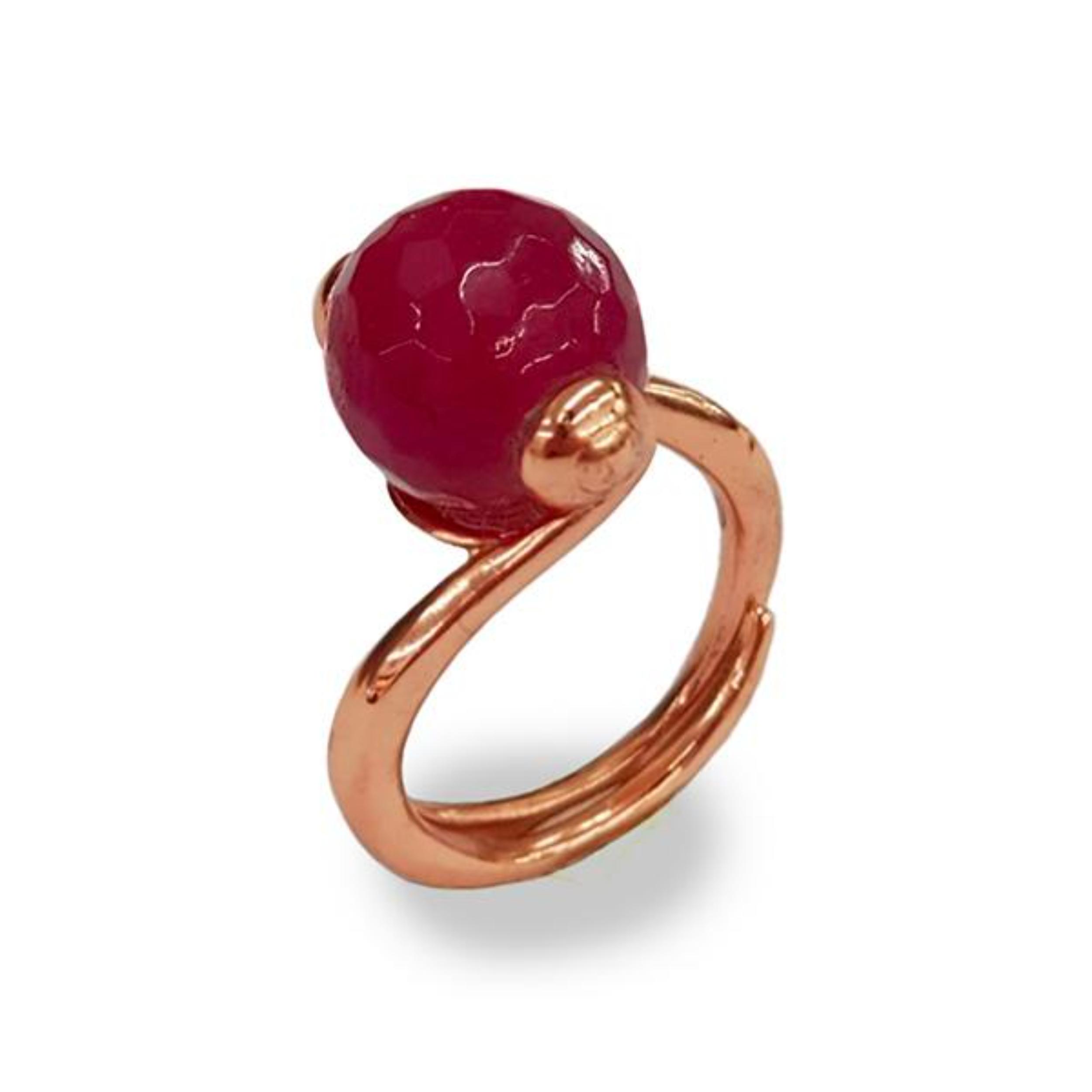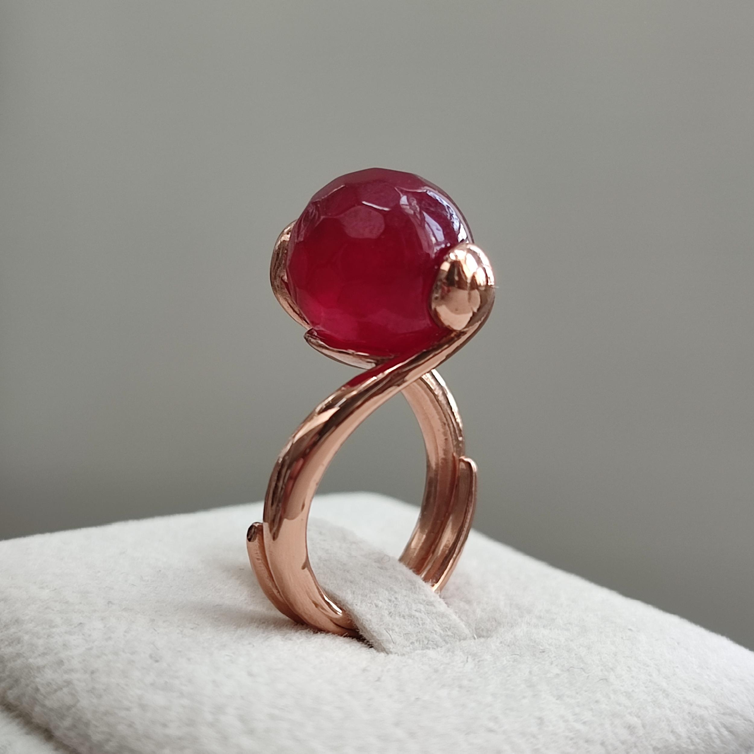 Inel reglabil, cu agat rubiniu fațetat, cu sferă de 12 mm.