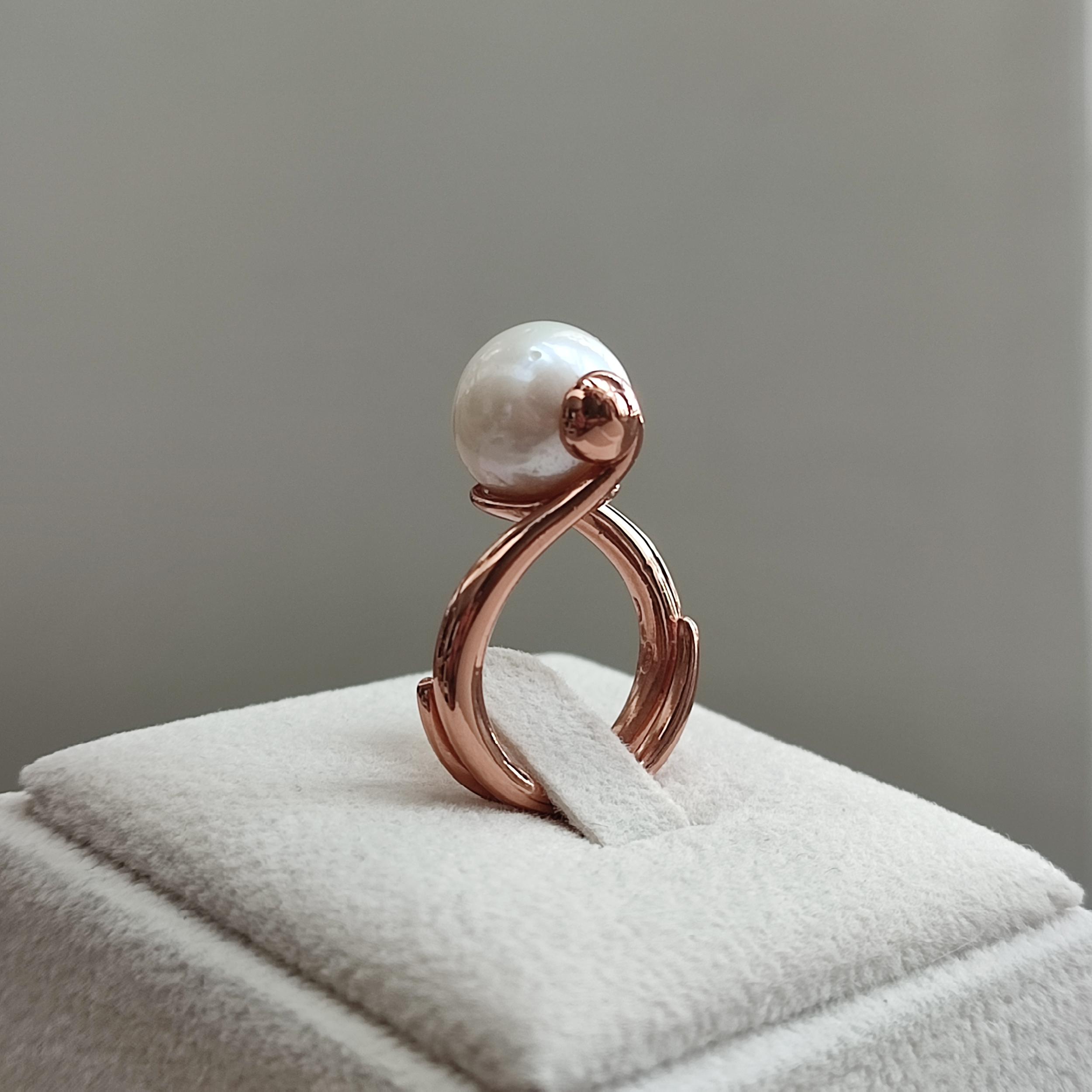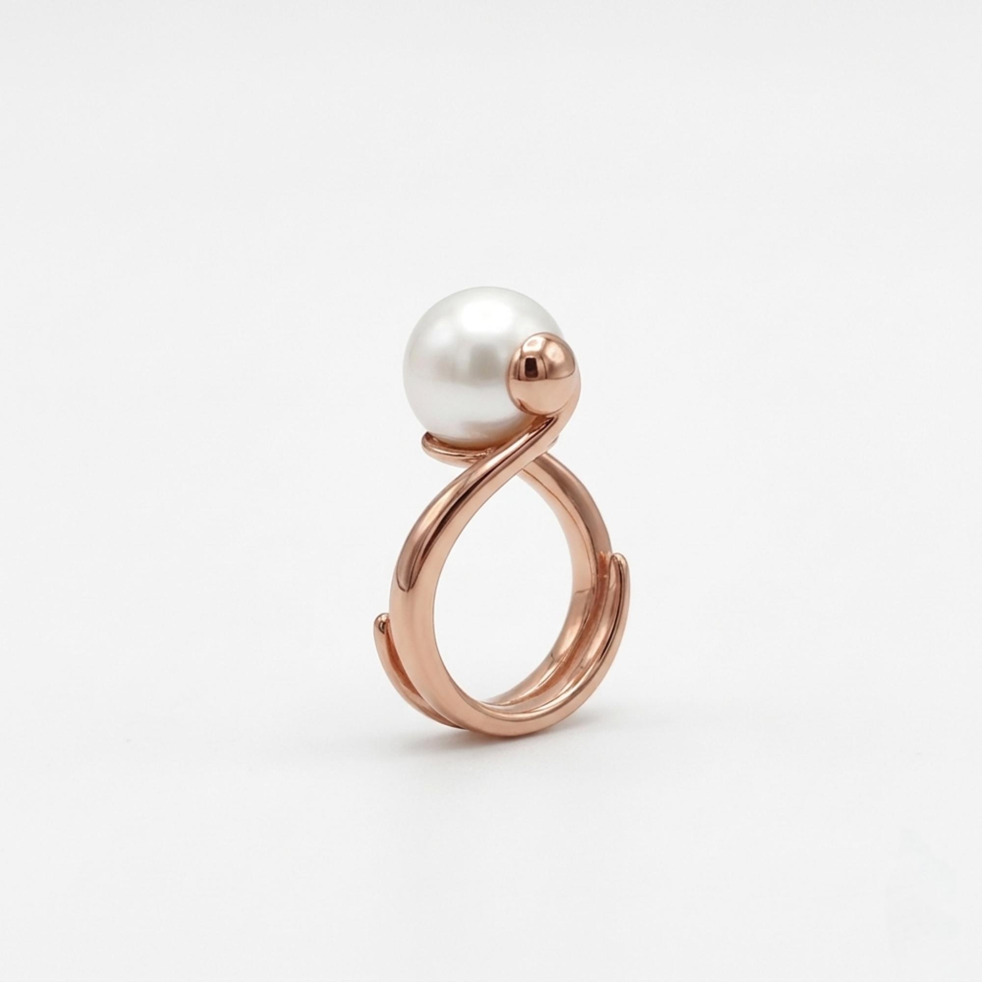 Inel reglabil, cu perlă de cultură albă, cu sferă de 12 mm.