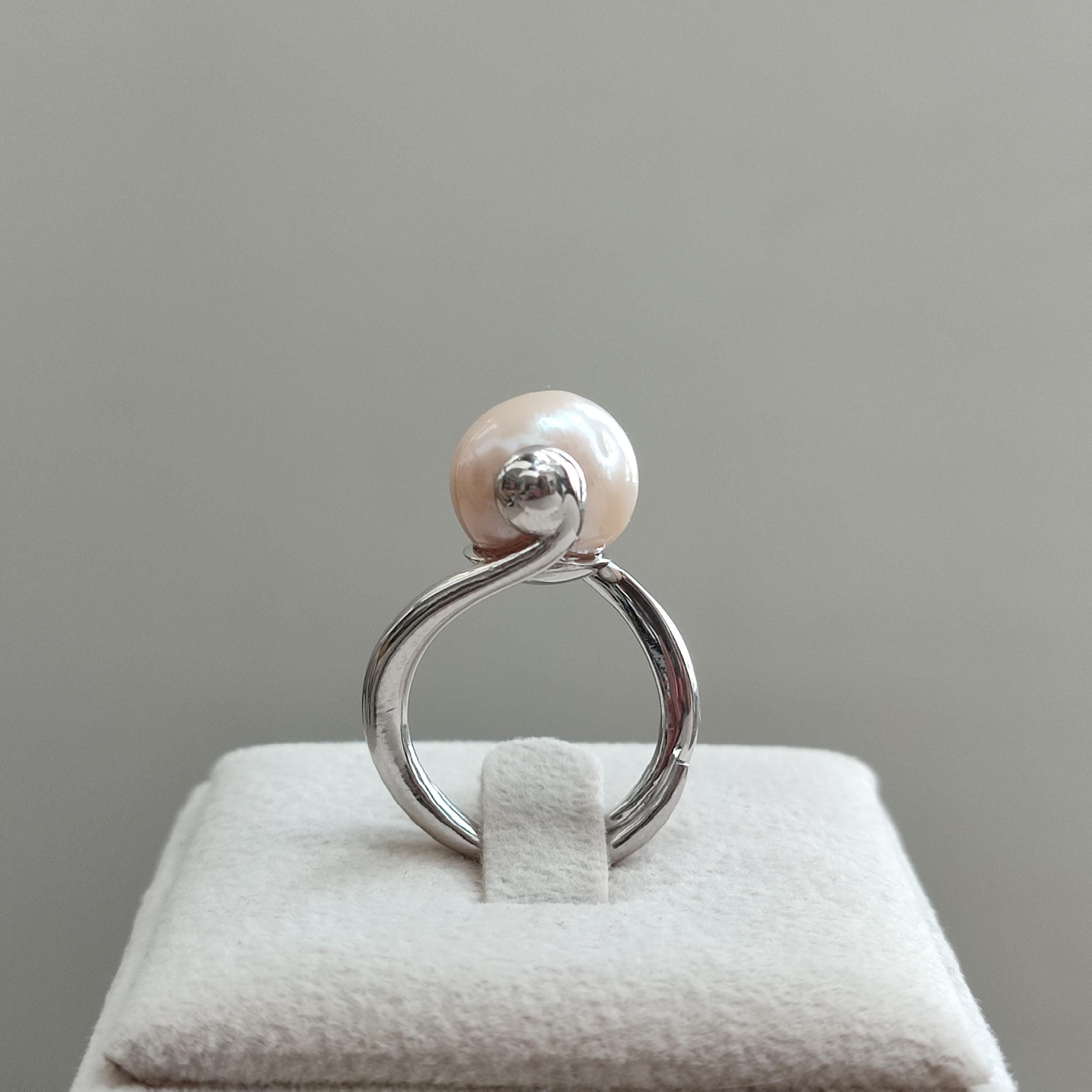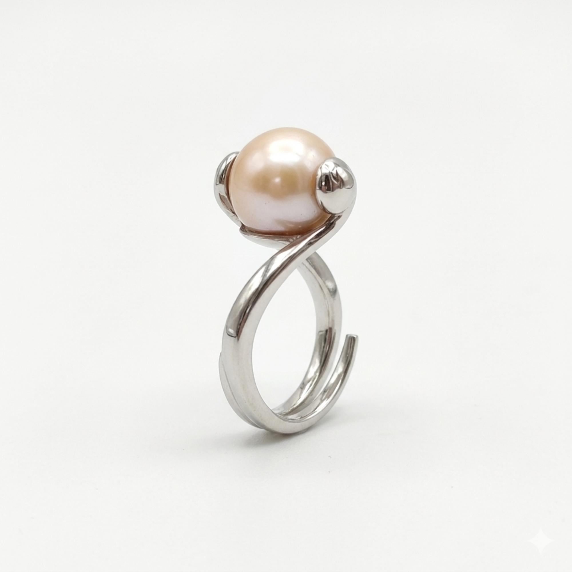 Inel reglabil, cu perlă de cultură albă, cu sferă de 12 mm.