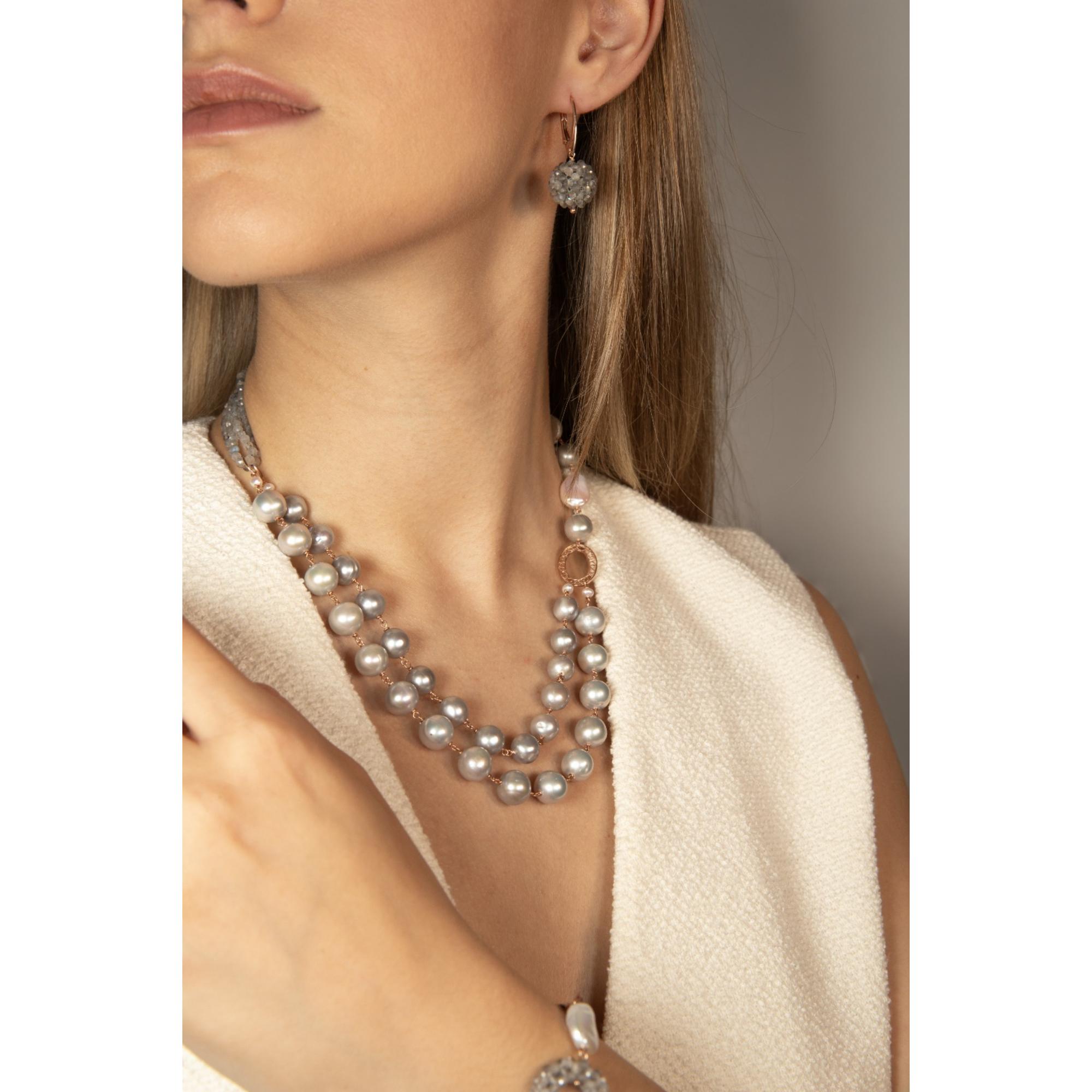 Set Glow din perle de cultură gri, compus din: colier, cercei și brățară.