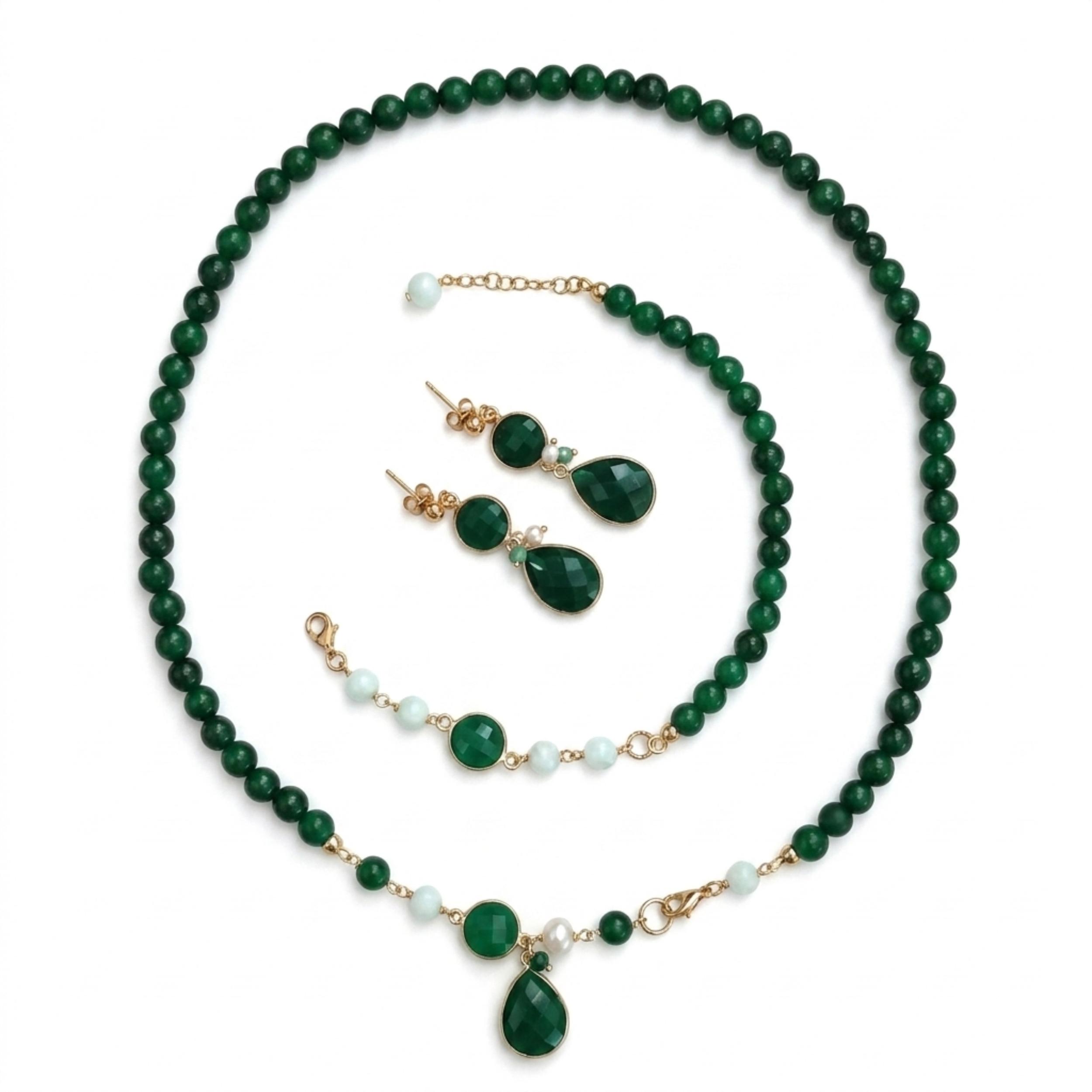 Set Lilou din agat verde smarald, compus din: colier, brățară și cercei