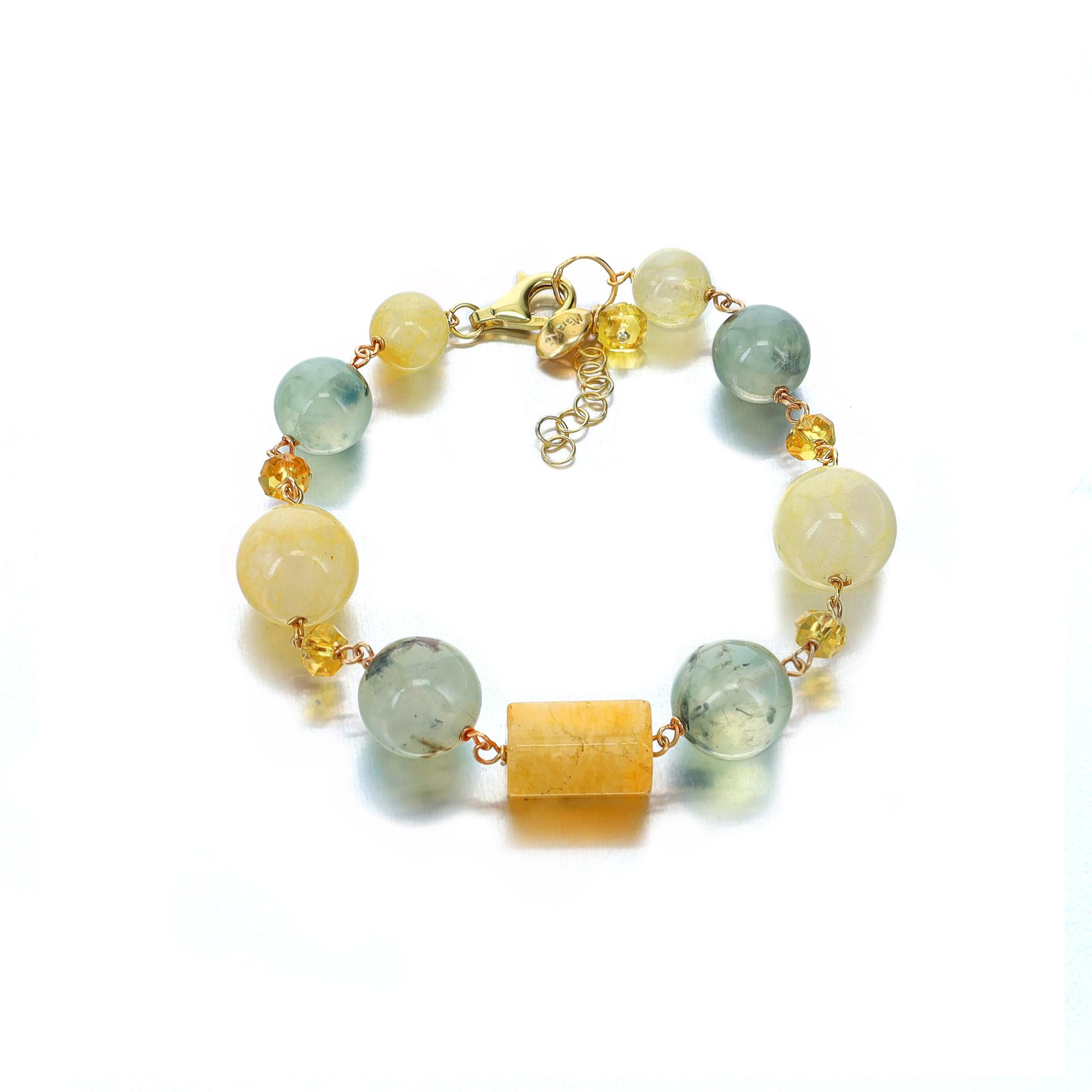 Brățară Venera din agat galben, cuarț rutialt verde și cuarț galben hidrotermal.
